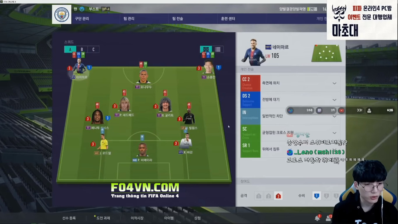 RW,LW : CC2 để bám biên nhiều, DS2 giúp hạn chế lùi về quá nhiều và SR1 di chuyển xâm nhập ra phía sau hàng phòng ngự. Xu hướng chơi 3-1