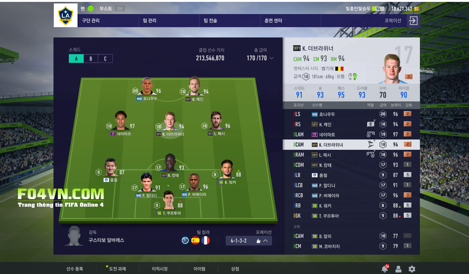 Tổng quát : Tốc độ 68 cùng chuyền bóng ở mức 50 để gia tăng tốc độ tấn công của các thành viên đội bạn. Tuy nhiên, lối chơi tổ chức sẽ giúp duy trì các vị trí tốt hơn.