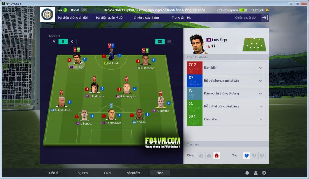- RW và LW : Nên chọn nhưng cầu thủ có tốc độ và khả năng đột nhập vòng cấm dứt điểm tốt. Như mình đang sử dụng là Luis Figo và Kylian Mbappe. Tuy nhiên Figo hơi đuối khi phải đua tốc.