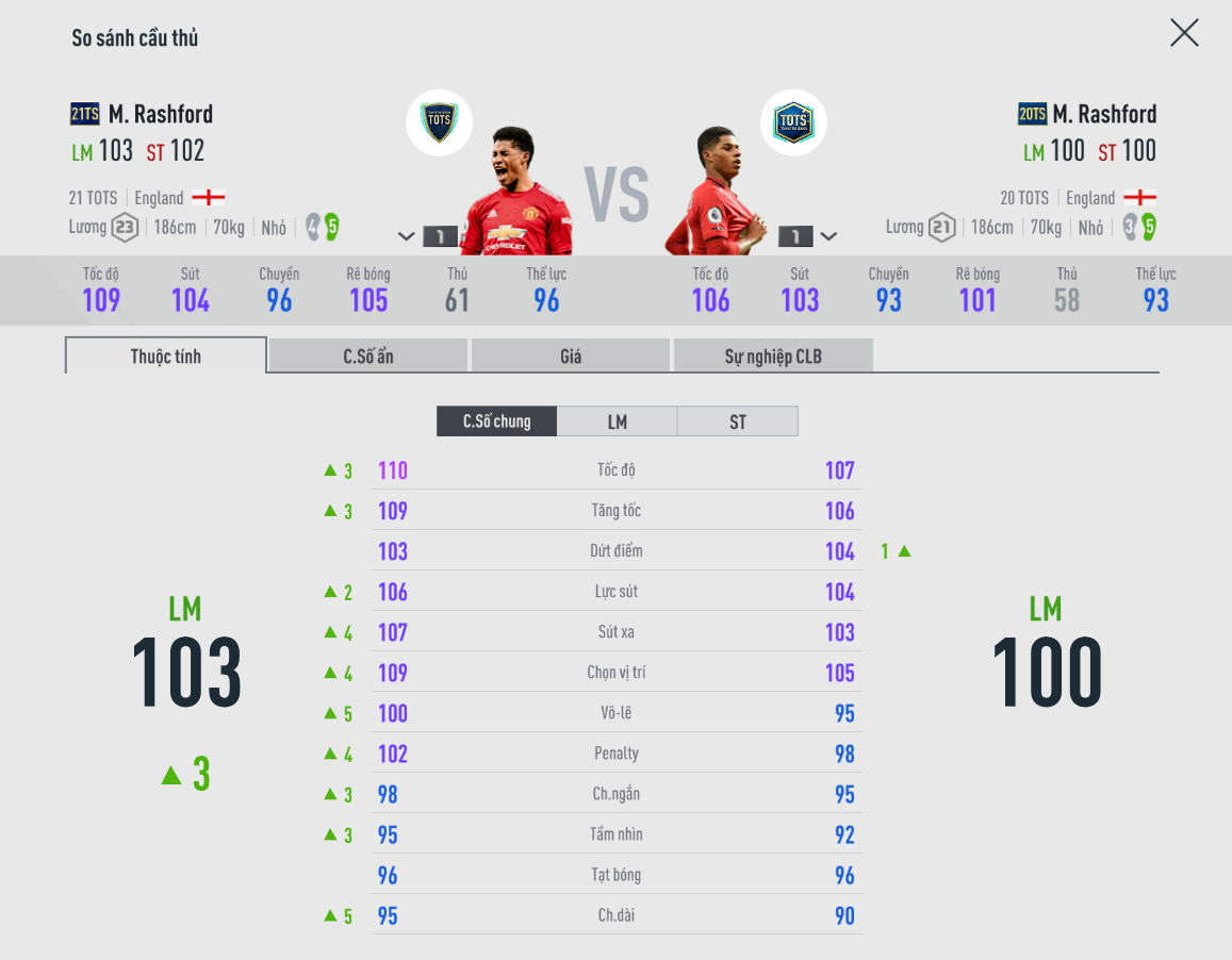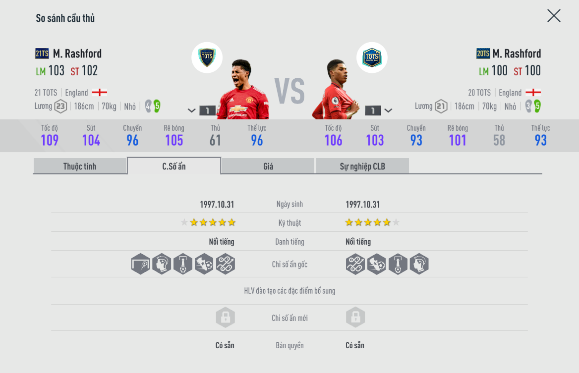 Có đôi chút ngạc nhiên khi mà 20TS lại cho một Rashford có phần lỳ lợm hơn, thậm chí cảm nhận rõ rệt hơn hẳn so với 21TS. Điều này các bạn cần hết sức chú ý vì nó sẽ ảnh hưởng đến thói quen sử dụng cầu thủ của bạn