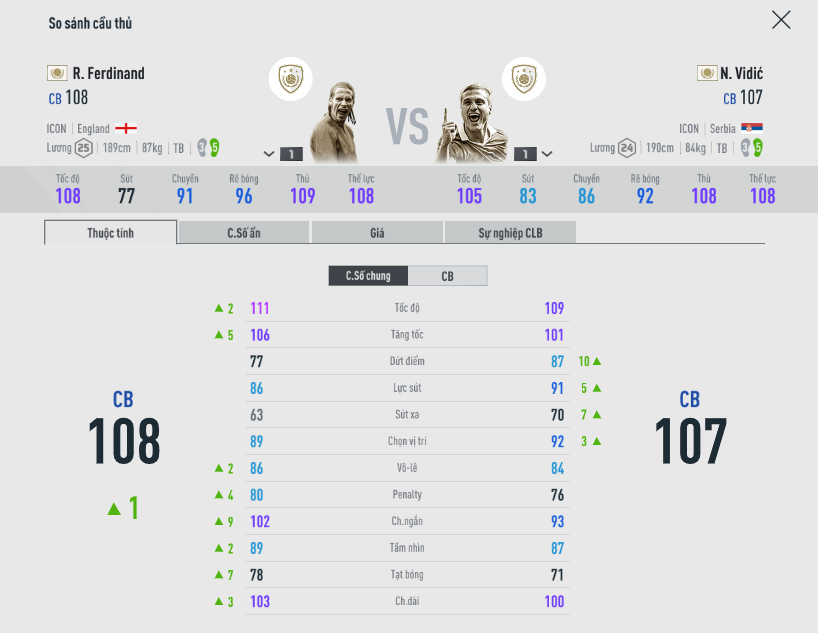 Nếu đều chọn lựa trong meta hiện tại, cá nhân người viết bài đánh giá cao cái tên Ferdinand hơn khi có tốc độ và khả năng toàn diện hơn Vidic. Đặc biệt là tránh các trường hợp bị giật mình khi đối phương ZW hay QW