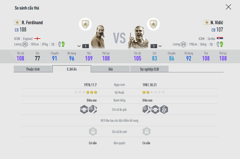 Vidic là trung vệ có khả năng không chiến ở ngoài đời không phải bàn cãi, nhưng trong game có vẻ như Ferdinand vẫn nhỉnh hơn đôi chút