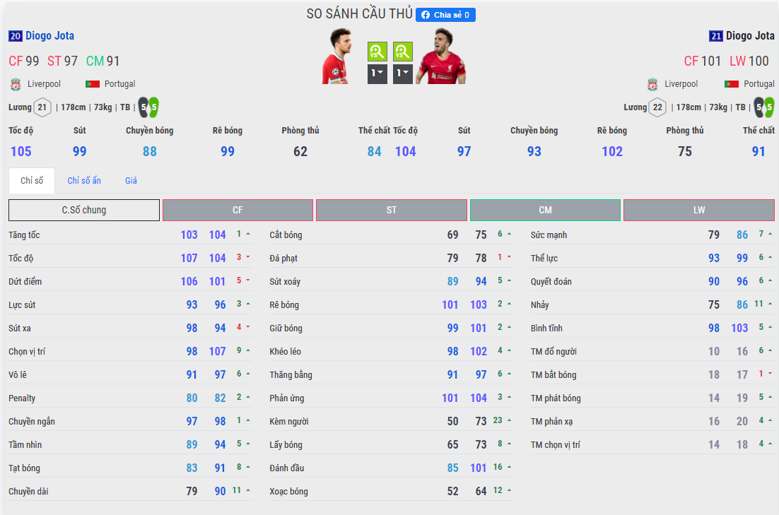 Với phong độ ấn tượng, Jota đang là một trong những nhân tố quan trọng trong lối chơi của Liverpool. Mùa giải 21UCL với chỉ số rất cao 101 liệu có thực sự vượt trội so với mùa 20UCL hay không ?