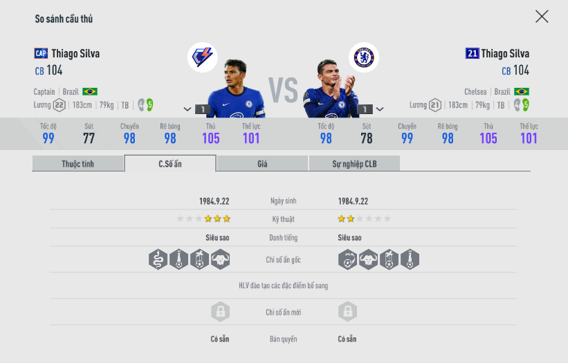 Thigo Silva là một trung vệ được các fan hâm mộ của Chelsea đặc biệt quan tâm, bởi anh thường xuyên được chọn để đá cặp với Rudiger trong game. Mặc dù Chelsea có lực lương cực mạnh nhưng đáng tiếc là các huyền thoại của họ ở vị trí này lại không có trong game để người chơi có thể lựa chọn.
