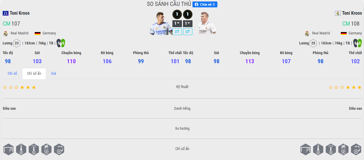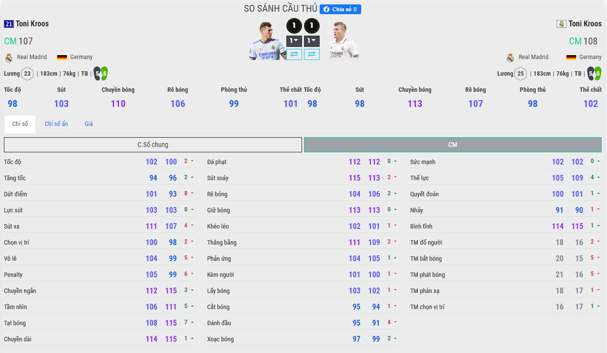 Dù có cho mình rất nhiều mùa giải nhưng chỉ đến mùa 21UCL thì Tony Kroos mới chính thức được cộng đồng FO4 để tâm và sử dụng nhiều hơn. Giờ đây khi có thêm mùa giải Real Madrid CF Ambassador ra mắt, với chỉ số cao hơn, liệu rằng 21UCL có thể cạnh tranh được không? mời các bạn xem những đánh giá sau