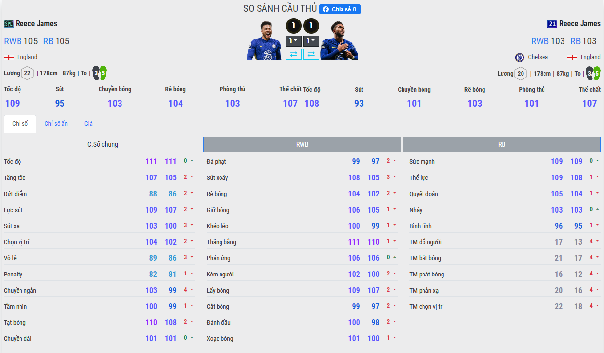 Nếu bạn cần một cầu thủ toàn diện hơn ở khâu tấn công thì SPL có lẽ sẽ phù hợp, nên nhớ chỉ số của Reece James là RWB một cầu thủ thuần cánh và thích hipwj tấn công nhiều. Còn mùa 21UCL thiên hướng thủ nhiều hơn, và phần tấn công hơi thấp một chút
