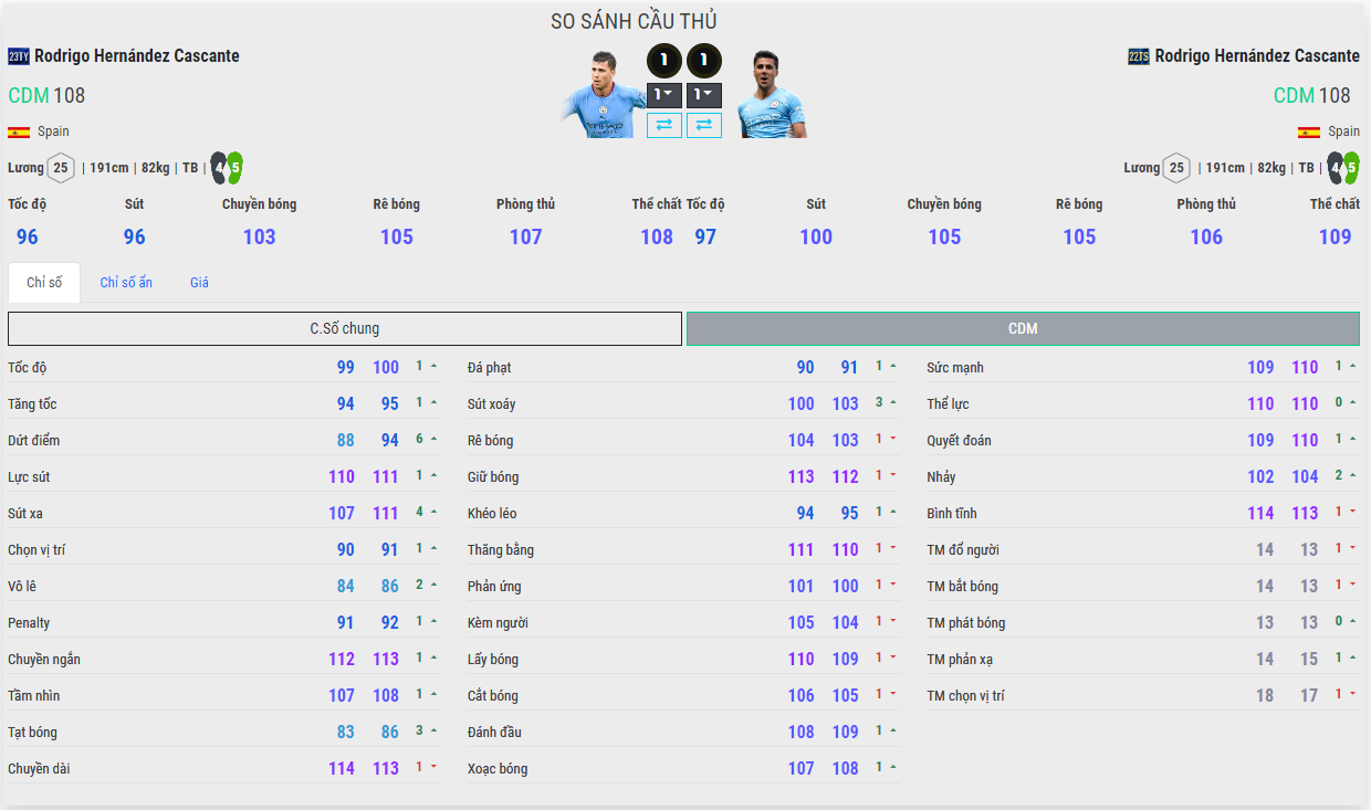 Tiền vệ người Tây Ban Nha là cái tên được nhiều HLV trong Fo4 tin dùng vì chiều cao và thể hình lý tưởng trong game. Tuy nhiên chỉ khoảng 1 năm trở lại đây thì Rodri mới thực sự được các HLV chú ý đến sau khi anh có được phong độ tốt trong màu áo Man City.
