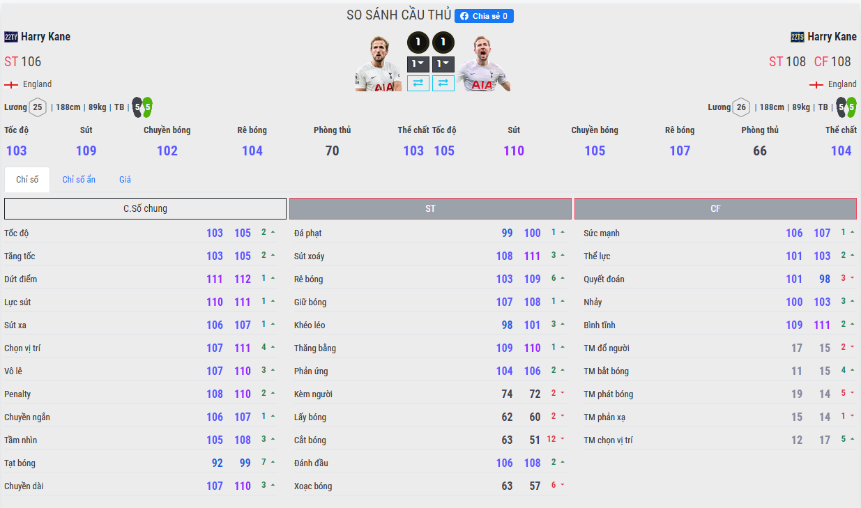 Trong game thì Kane có khá nhiều mùa giải hay, hai mùa gần nhất của anh chính là 22TS và 22TY. Chúng ta sẽ đi vào so sánh hai mùa này xem sao