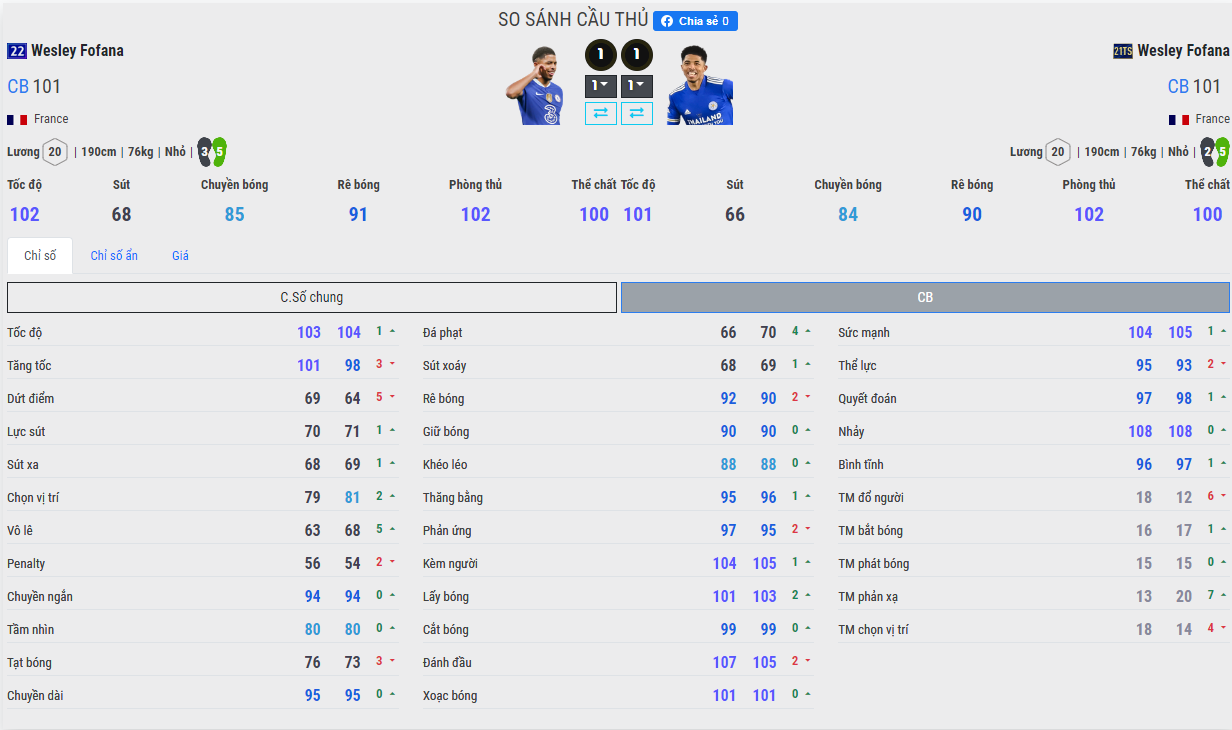 Sau khi chuyển sang Chelsea thì cựu cầu của thủ Lesceiter City đã có cơ hội được góp mặt tại giải đấu UEFA Champions League, và nhờ đó sau 2 năm chúng ta mới lại thấy một mùa giải mới của trung vệ cao 1m90 này. Tuy vậy, chỉ số vẫn chỉ dừng lại đúng bằng mốc 21TS là 101. Vậy đâu mới là mùa giải tốt hơn của Fofana.
