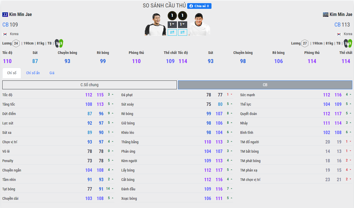 Như các bạn thấy thì Kim Min Jae 23TS không quá vượt trội so với 22UCL ngoài việc tốc độ nhỉnh hơn 1 chút xíu. Các chỉ số phòng ngự mặc dù hơn nhưng không tạo ra nhiều sự khác biệt để chúng ta cho thấy nó hơn hẳn.