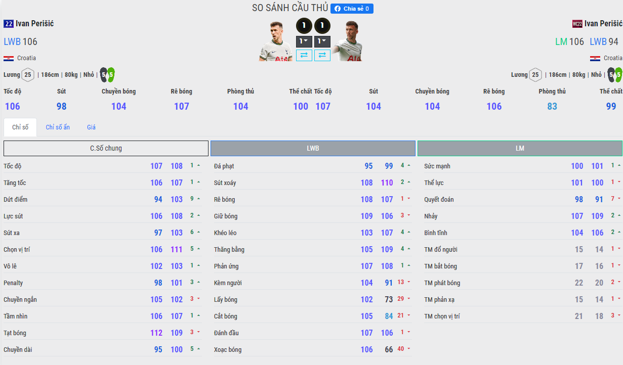 Không khác nhau nhưng có lẽ với một cầu thủ mà chuyên tâm vào vai trò phòng ngự thì có lẽ nó không quá quan trọng với mùa 22UCL, tất nhiên nếu như bạn thích để Perisic dâng cao tấn công chồng biên liên tục thì đây cũng là một tiêu chí cần phải chú ý. Nhưng nếu tấn công nhiều thì có lẽ bạn nên chọn mùa WC22 có lẽ sẽ hợp lý hơn.