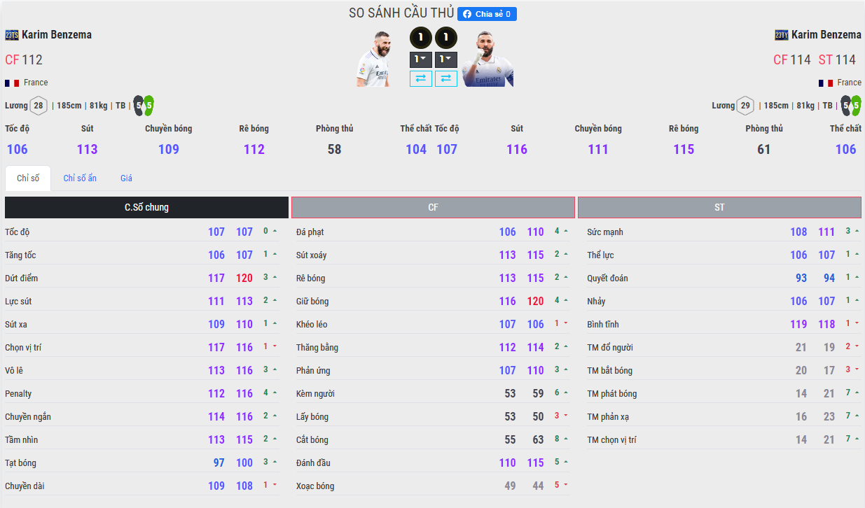 Hai mùa giải này chênh nhau 2 chỉ số ovr và mức lương 1 đơn vị. Nhưng các chỉ số thành phần không có quá nhiều sự khác biệt. Thứ duy nhất tạo ra sự khác nhau của hai mùa giải này chính là việc chỉ số ẩn của mùa giải 23TY có đánh đầu mạnh. Nhưng liệu rằng chừng đó có tạo ra được khoảng cách hay không ?