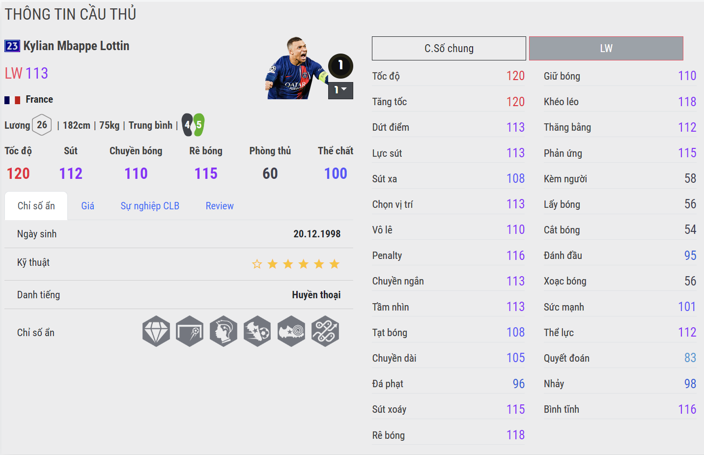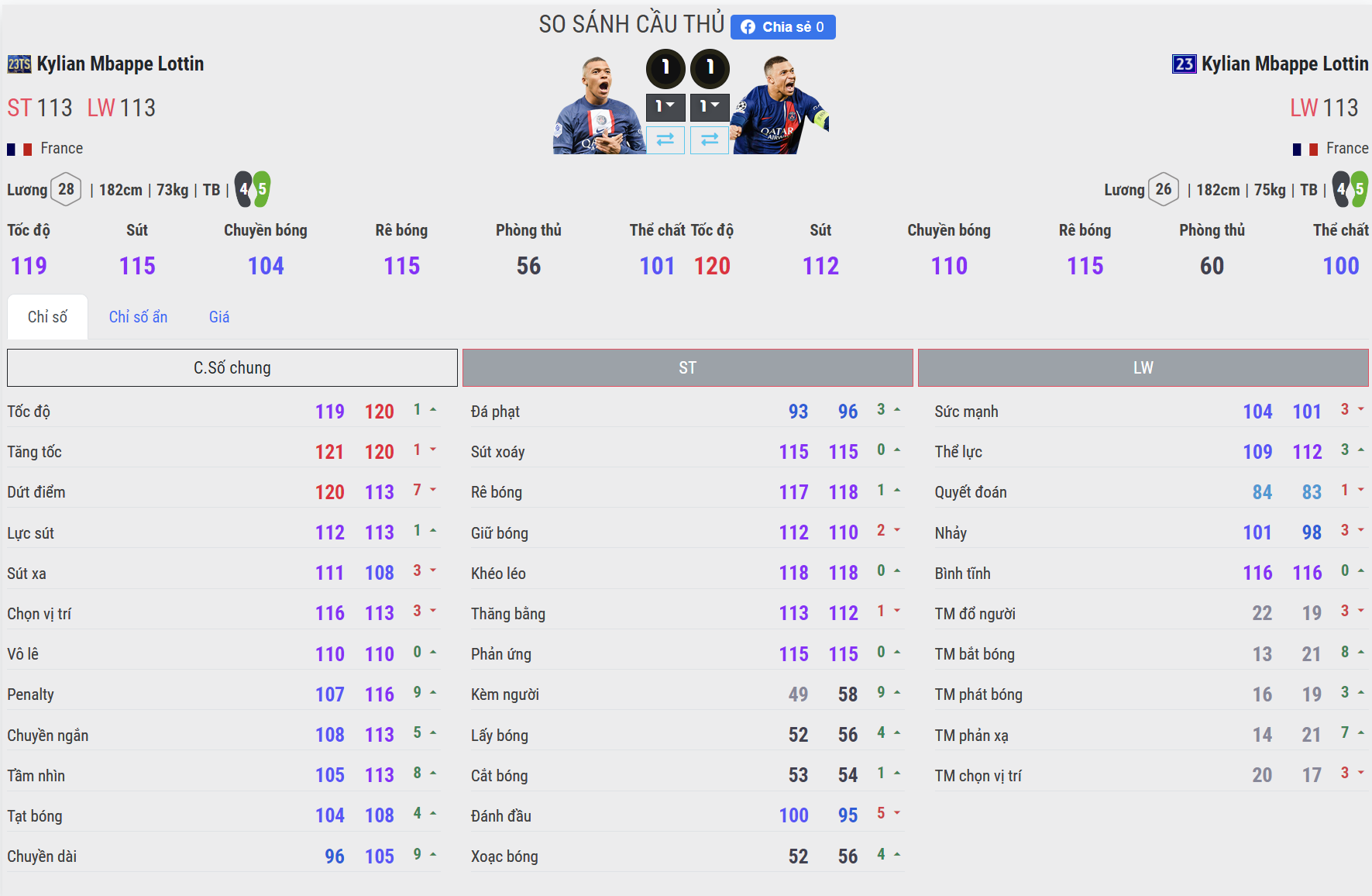 Xét về mặt tốc độ, cả 2 phiên bản Mbappe đều cho thấy sự nhanh nhẹn vượt trội và sức rướn cực kì tốt. Điều này khiến cho tiền đạo người Pháp có nhiều lợi thế trong các tình huống đua tốc khi tham gia tấn công một cách hiệu quả.