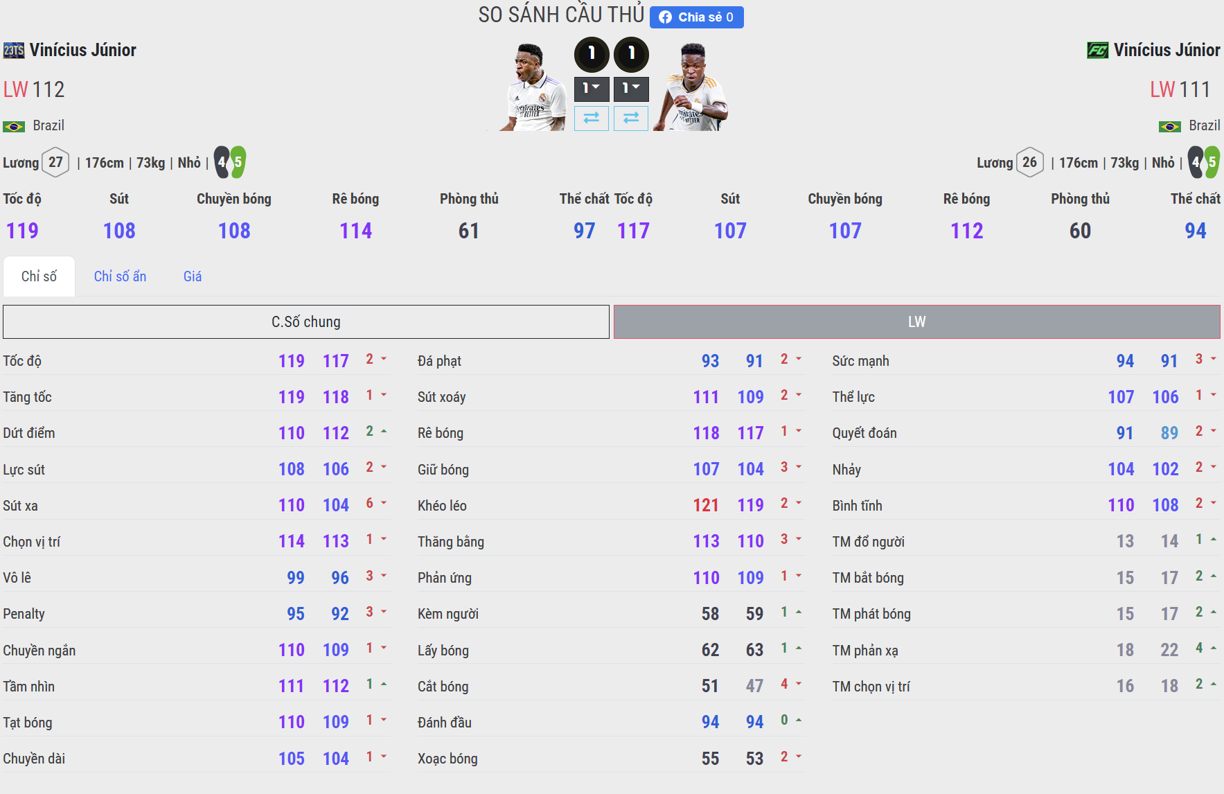 Rê bóng cũng là một điểm cực kì tốt của Vinicius ở cả 2 phiên bản. Tốc độ rê bóng, ngoặt bóng, điều chỉnh hướng bóng đều tỏ rõ sự hiệu quả và không chênh lệch quá nhiều.