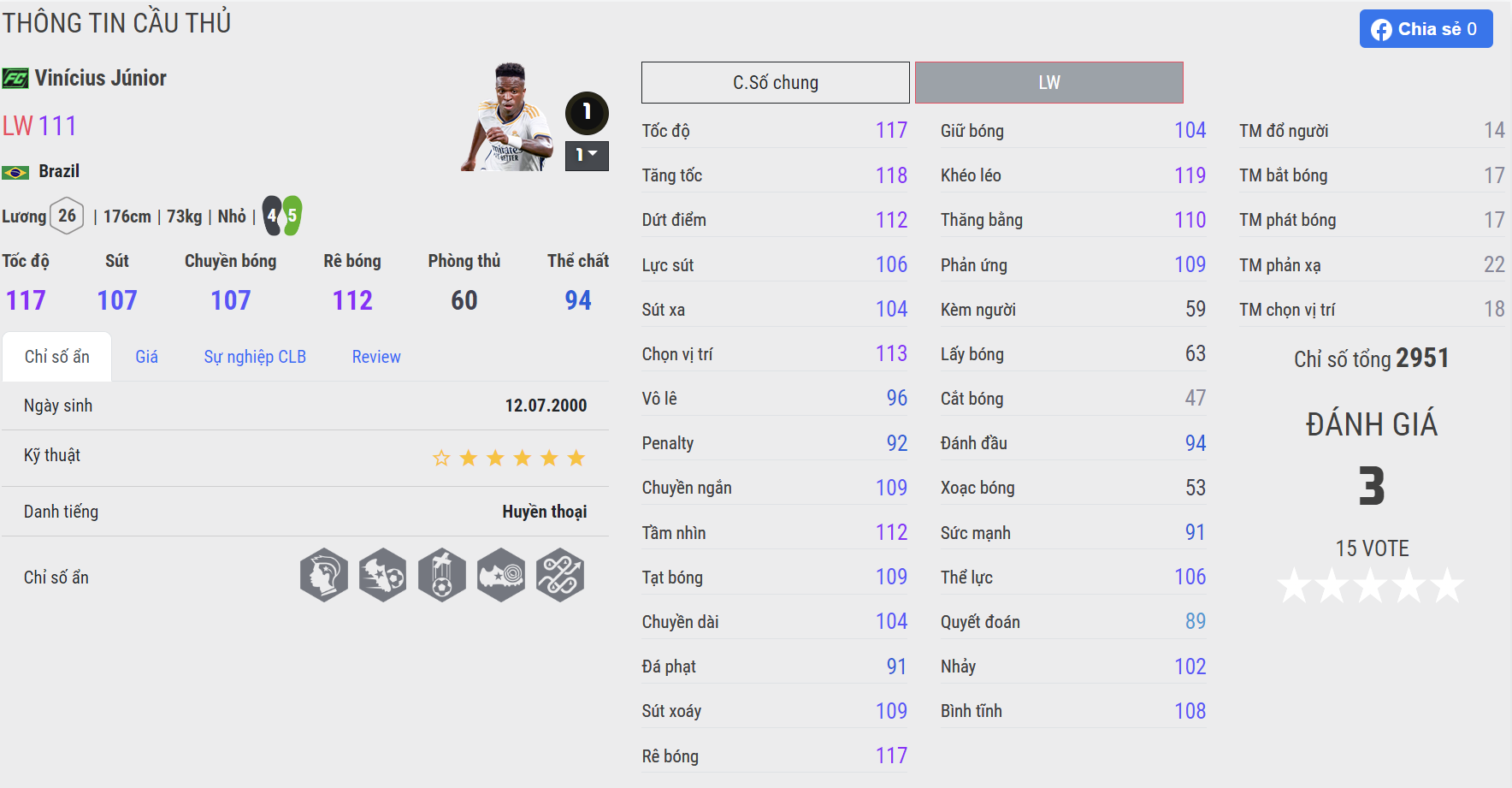 Thật vậy, người chơi FC Online đã dần quen với việc xếp Vinicius đảm nhiệm hành lang trái bởi anh quá xuất sắc ở vị trí này ở khả năng bùng nổ và thực hiện một lối chơi cực kì ổn định qua các mùa giải được ra mắt.