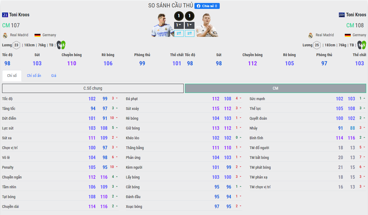 Mùa giải 21UCL của Toni Kroos có chỉ số rất cao và mức lương tương đối rẻ, điều này tạo ra một tâm lý khá dè dặt với 23TY chỉ hơn một chỉ số nhưng mức lương tăng 2 đơn vị.