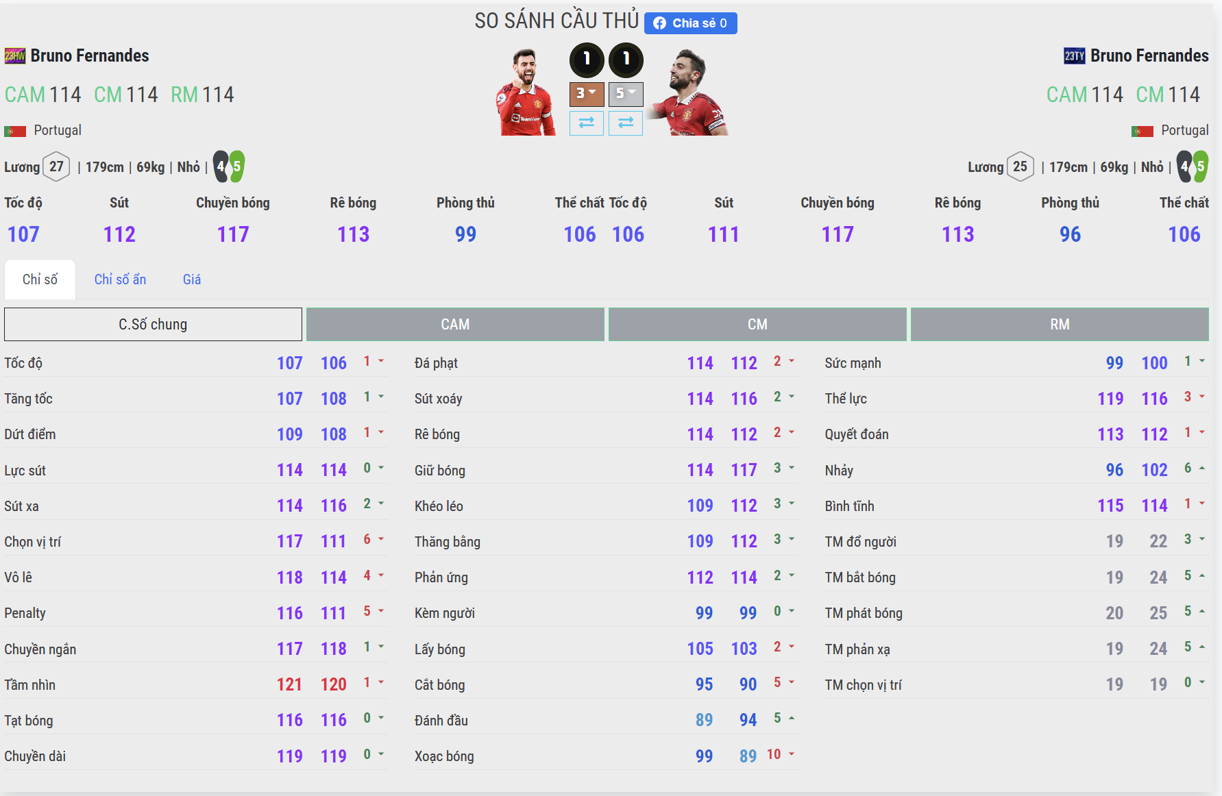 Đánh giá 2 màu giải kể trên, về tốc độ là khá tương đồng, Bruno Fernandes có tốc độ ở mức đủ dùng, anh không hề nhanh nhưng tốc độ rê bóng cũng cho cảm giác không hề chậm chạp chút nào.