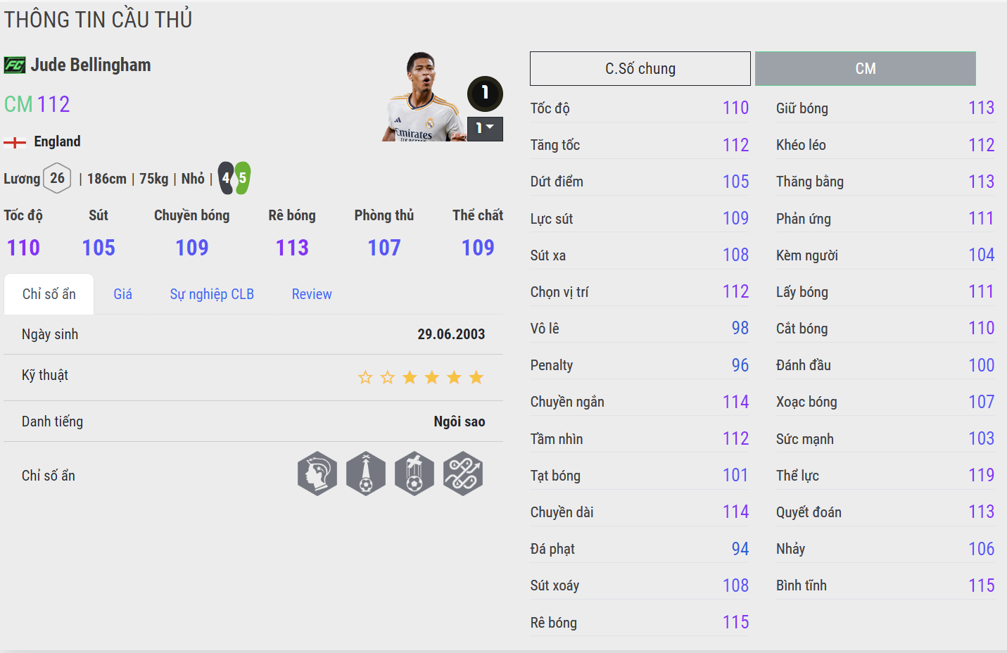 Chân không thuận đã được nâng cấp lên 5 sao chính là điểm giúp Bellingham cải thiện đáng kể khả năng dứt điểm. Độ ổn định trong những cú sút của Bellingham 24TOTY giờ đã tốt hơn nhiều và độ chính xác trong những cú sút của Bellingham 24TOTY cũng là tốt hơn so với mùa thẻ FC.