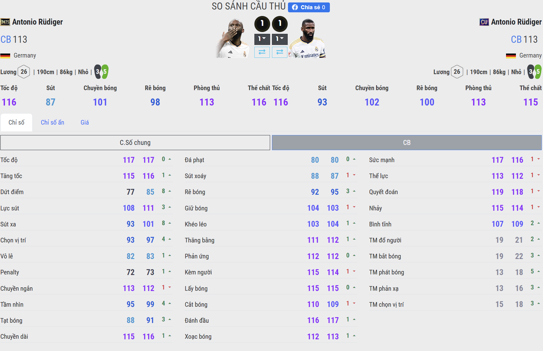 Cảm giác tì đè ở cả 2 phiên bản của Rudiger đều khá tương đồng. Mặc dù vậy, đôi lúc cảm giác phiên bản 24TS vẫn cho thấy độ ổn định và sức vóc tranh chấp ổn định hơn, ít có những pha đứng hình để đối phương vượt qua mà không chủ động phản ứng.