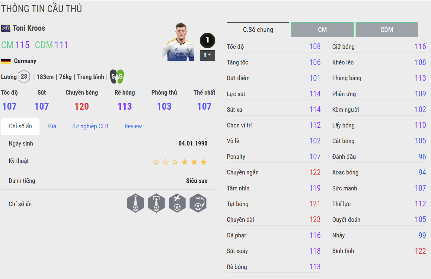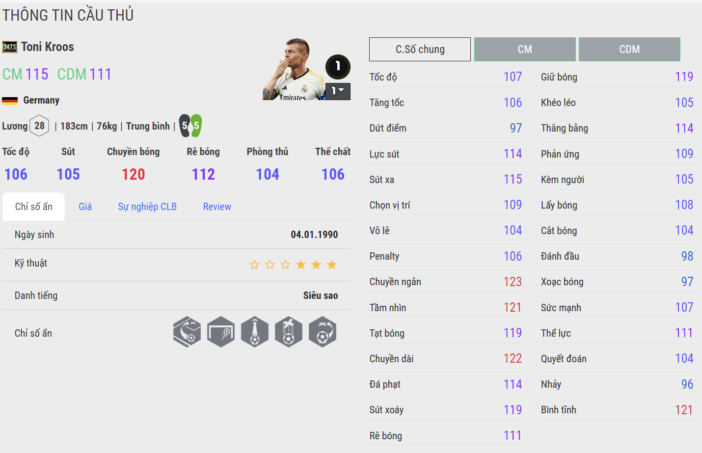 Toni Kroos đã có những tuyên bố về việc giải nghệ sự nghiệp bóng đá sau khi hết hợp đồng với Real Madrid và không thể cùng ĐT Đức giành chức vô địch Euro. Kroos cũng là một trong những tiền vệ quốc dân của FC Online hiện tại.