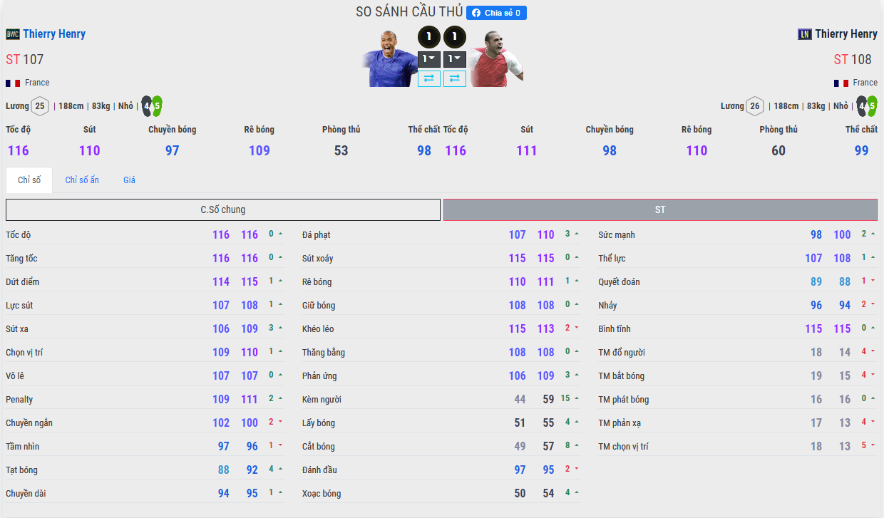 Thiery Henry ra mắt với chỉ số 107, thấp hơn 1 điểm so với mùa giải trước đó của anh là LN. Tuy nhiên mùa LN lại không được nhiều người ưa chuộng vì nhiều lý do khác nhau. Phần vì mức lương cao, bị lệch meta khi mà sở trưởng của Henry là ZD lại gặp phải meta buff sút xa...