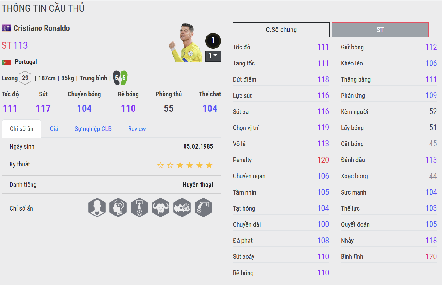 Cristiano Ronaldo luôn được đánh giá rất cao về khả năng tấn công toàn diện, đa dạng về team color và có một lượng fan đông đảo trong FC Online. Cầu thủ người Bồ sở hữu nhiều mùa thẻ chất lượng và mới đây mùa thẻ Cristiano Ronaldo UT đã chính thức xuất hiện