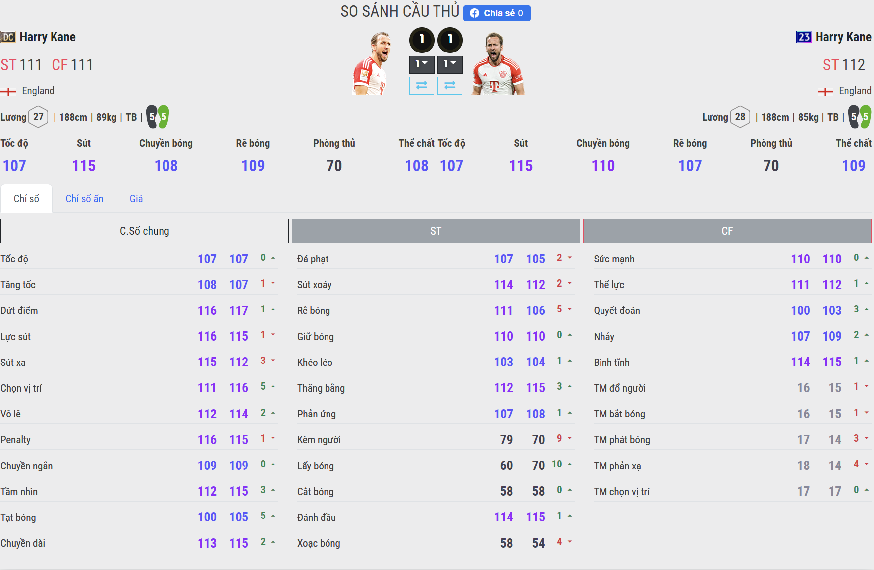 Cả 2 phiên bản đều sở hữu tốc độ ở mức ổn, đủ dùng với một tiện đạo cao to như Kane. Mặc dù vậy, mùa thẻ 23UCL đang cho cảm giác về thời gian đạt vận tốc tối đa có phần nhỉnh hơn 1 chút so với mùa DC.