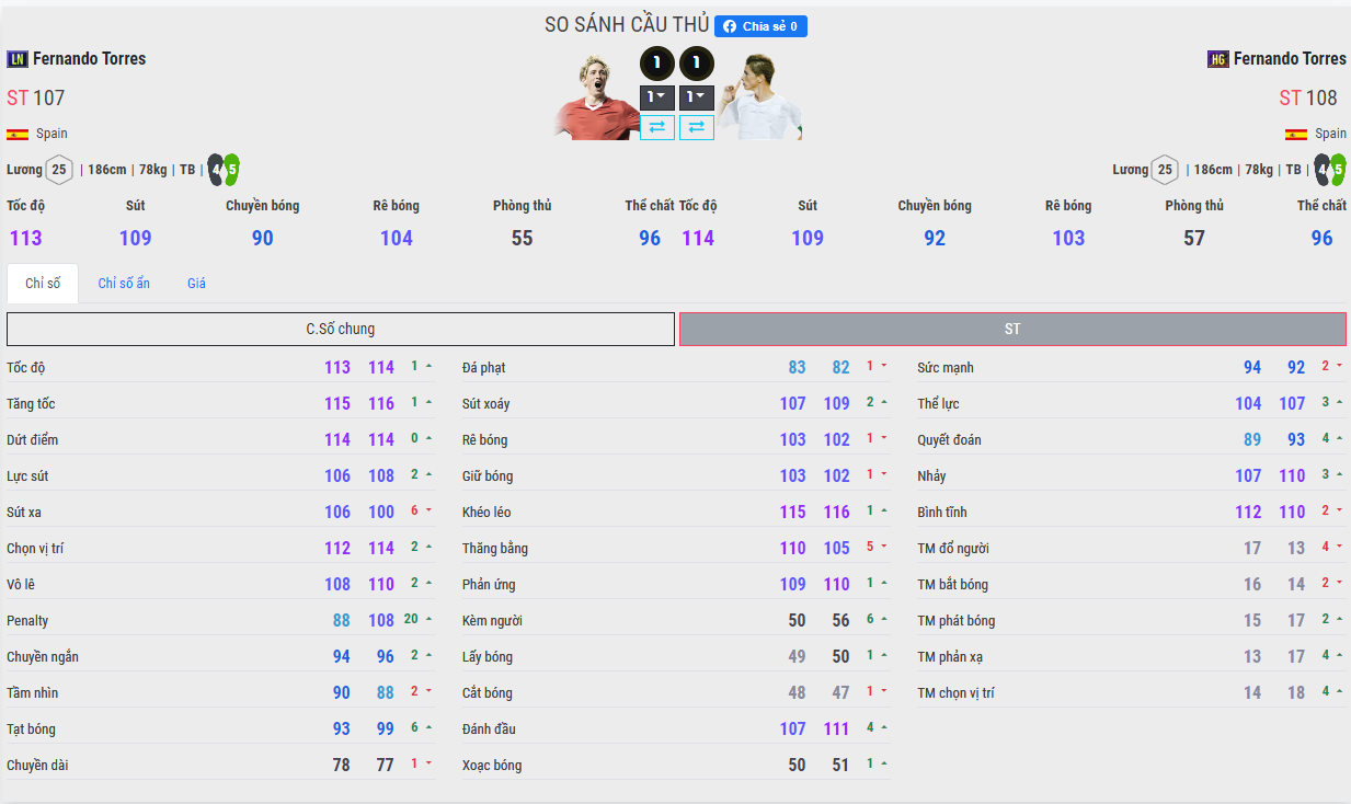 Sút cận thành thì cả hai mùa không có gì khác biệt, khả năng chọn vị trí, chạy chỗ không bóng của cả hai mùa gần như y chang nhau. Tuy nhiên xét về không chiến thì Torres LN nhình hơn chút.