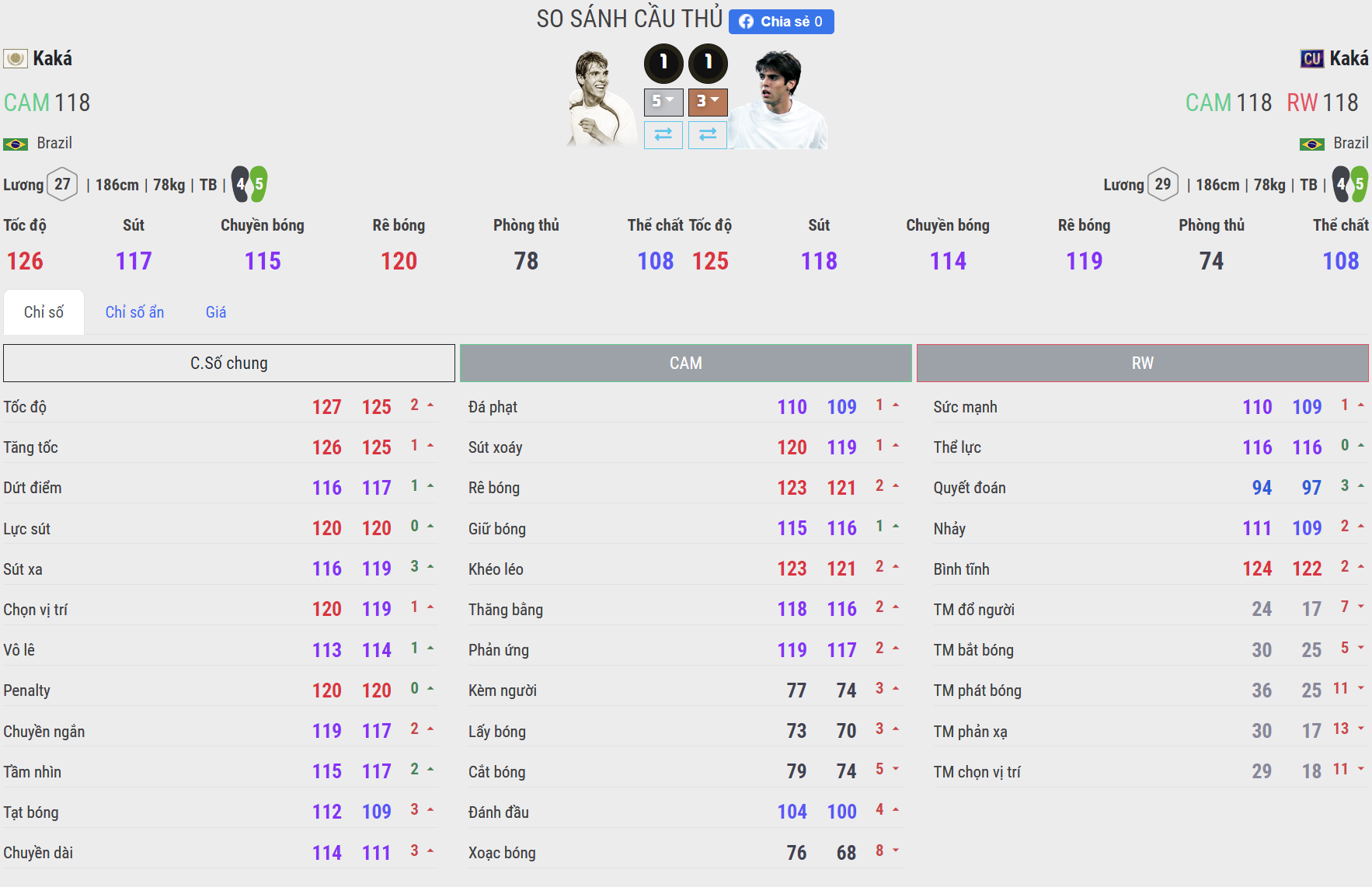 Kaka của cả 2 phiên bản CU và ICON đều có kỹ năng tì đè khá tương đồng, hiệu quả nhưng cũng không quá khỏe. Cần góc tì chủ động để tối ưu khả năng so vai với hậu vệ đối phương.