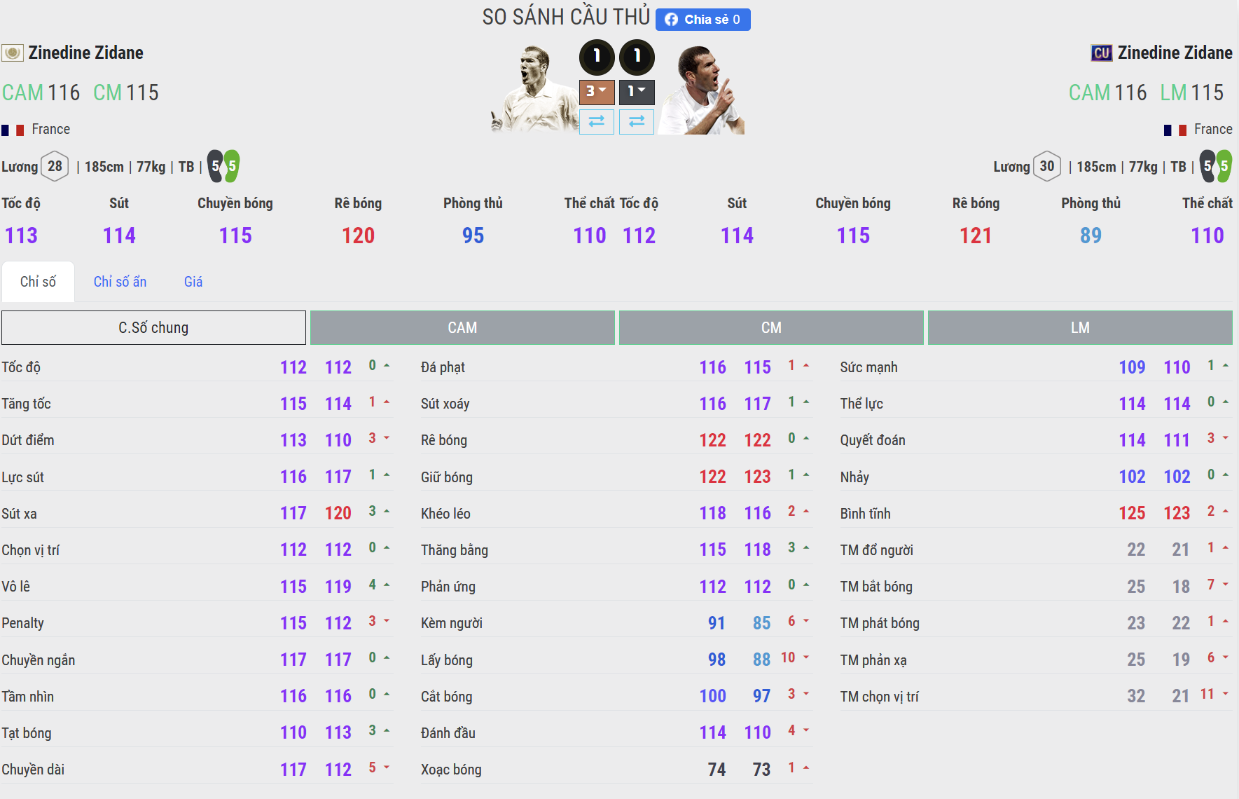 Có thể thấy Zidane ở cả 2 phiên bản này dứt điểm rất tốt ở trong phạm vi vòng cấm. Tuy nhiên với những HLV ưa thích nã đại bác thì Zidane CU lại cho cảm giác sút xa hiệu quả hơn từ lực sút, độ chính xác đều ổn định hơn so với mùa ICON. Tuy vậy, khả năng không chiến của mùa ICON vẫn cho thấy hiệu quả tốt hơn mùa CU đôi chút ở độ chính xác cũng như lực đánh đầu.