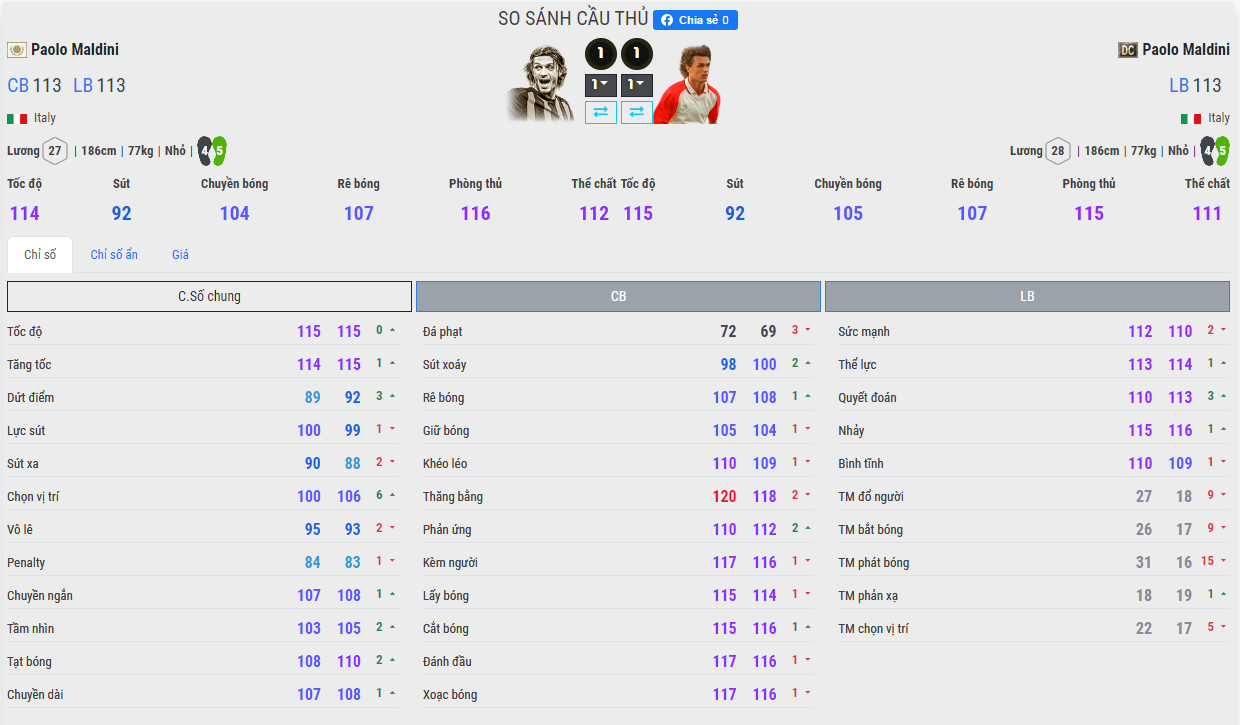 Xét về khoản đối đầu 1vs1 thì Paolo Maldini ICON nhỉnh hơn, phản ứng của phiên bản ICON nhanh hơn khi đối phương tìm cách vượt qua. Đây là một điểm khá quan trọng với những ai thích phòng thủ theo phong cách bắt bài, không lao vào để cướp bóng.