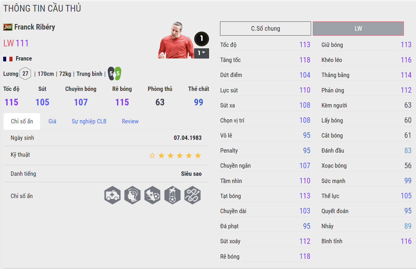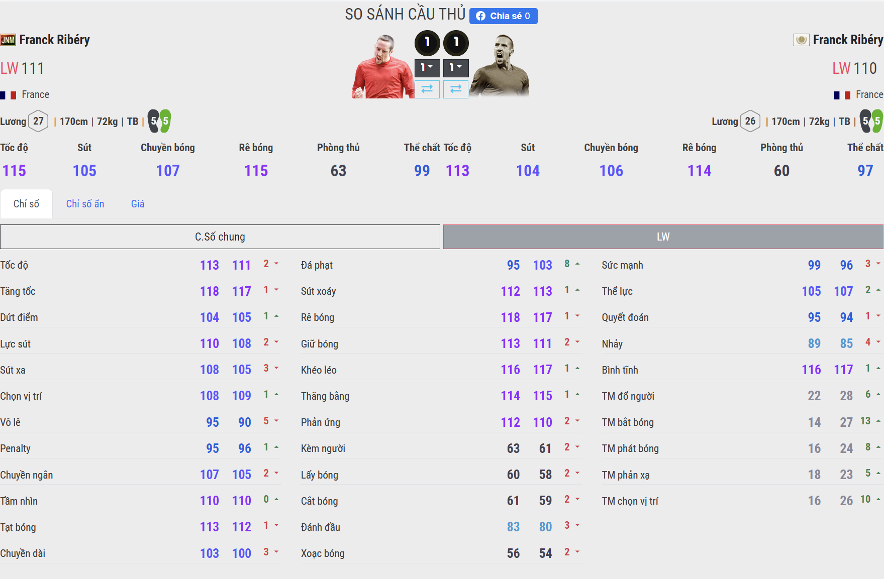 Tốc độ của 2 mùa thẻ JNM và ICON có nhiều điểm khá tương đồng. Cảm giác mùa JNM nhỉnh hơn đôi chút về khả năng bứt tốt. Tuy nhiên ở giai đoạn cuối trận, rõ ràng Ribery ICON cho thấy hiệu quả duy trì tốc độ tốt hơn JNM.