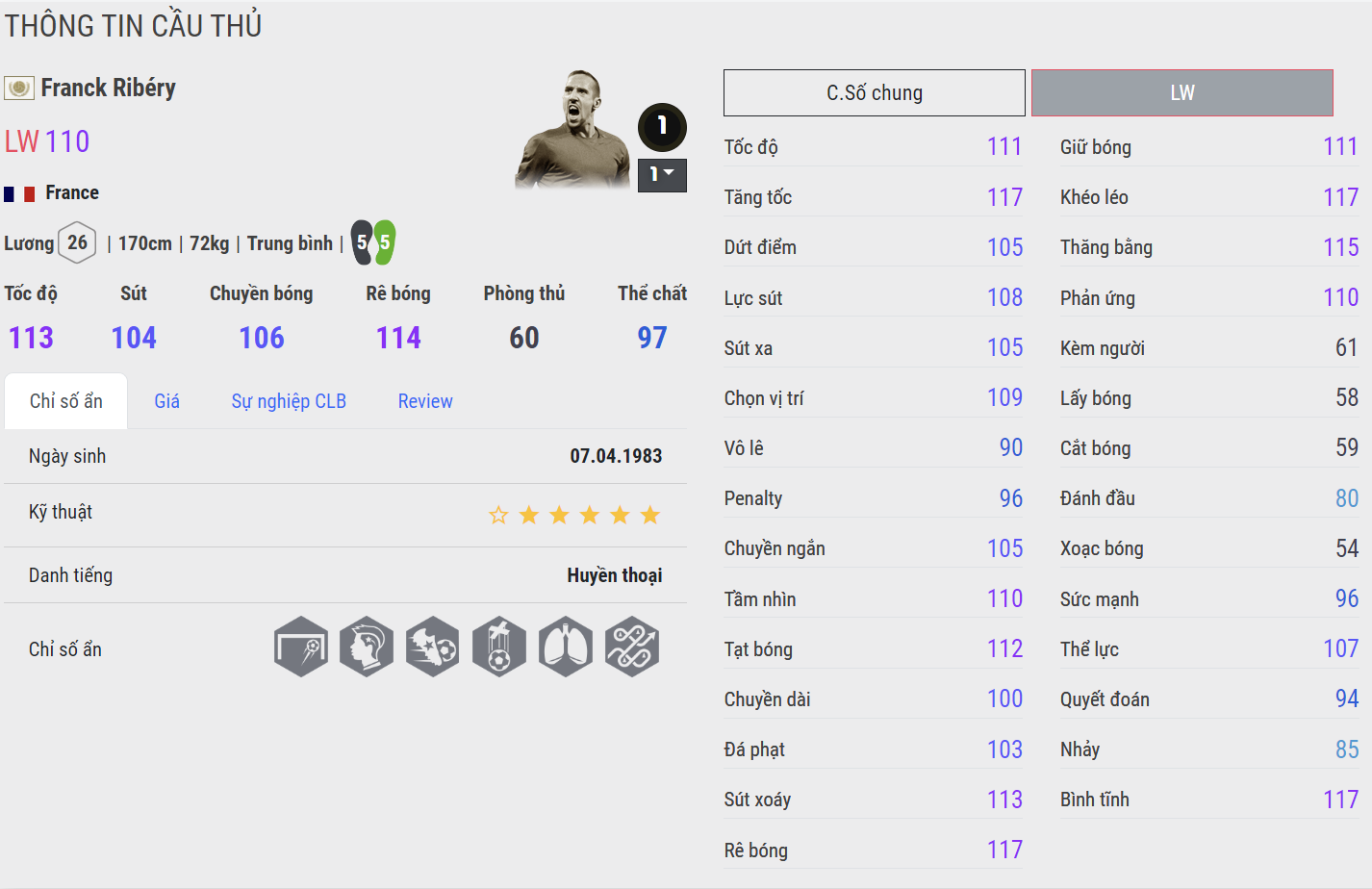 Ribery thời gian qua đang được đánh giá rất cao ở vai trò chạy cánh trong team color Bayern Munich và ĐT Pháp. Anh là mẫu cầu thủ có tốc độ, sở hữu 2 chân 5 sao và bộ kỹ năng chuyền bóng lẫn sút bóng đều rất hiệu quả.