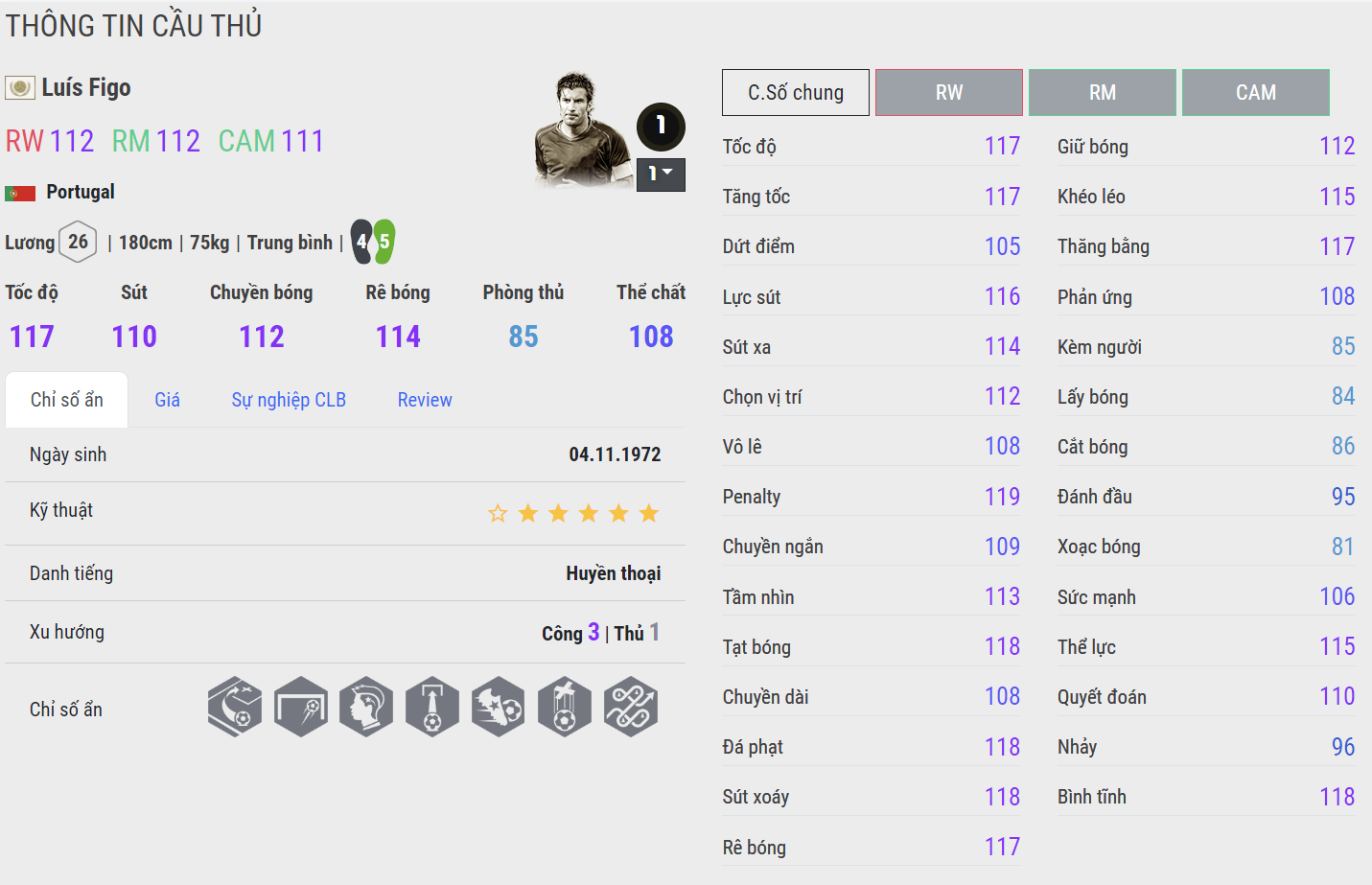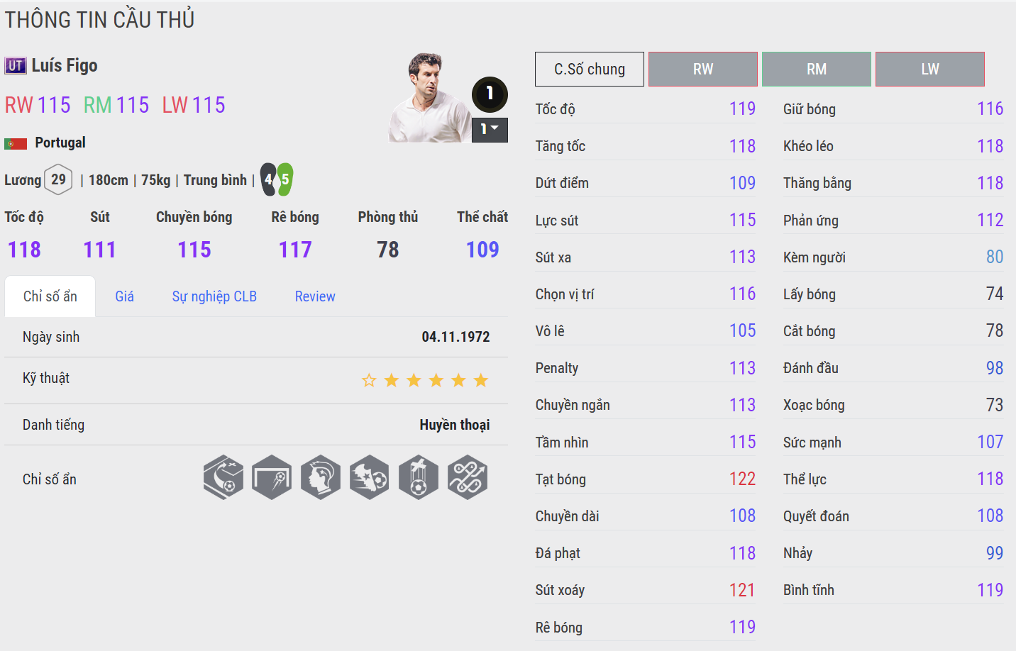 Luis Figo thời gian qua đang dần phát triển và trở thành một trong những tiền vệ cánh hàng đầu ở hành lang phải. Figo ICON đang đứng top 1 về giá trị sử dụng và độ hiệu quả ở hành lang cánh phải trong tháng 4 và hiện vẫn tiếp tục được đánh giá rất cao.