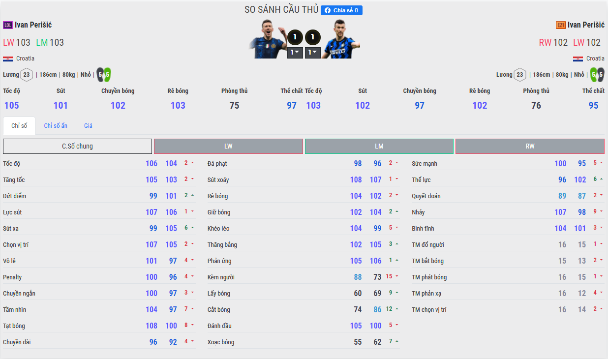 LOL trụ tốt hơn, nhưng thực tế thì cầu thủ của Inter hiện tại không phải mẫu dùng sức, tốc độ và khả năng thoát cánh mới chính là vũ khi của Perisic, nếu bạn nghĩ đến việc cao 1m86, nặng 80kg để tỳ đè thì không nên dùng.
