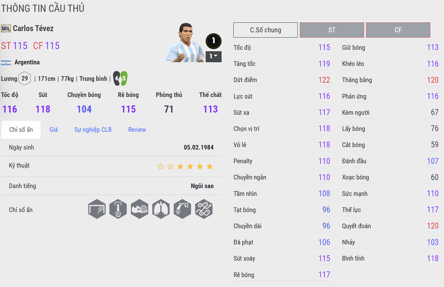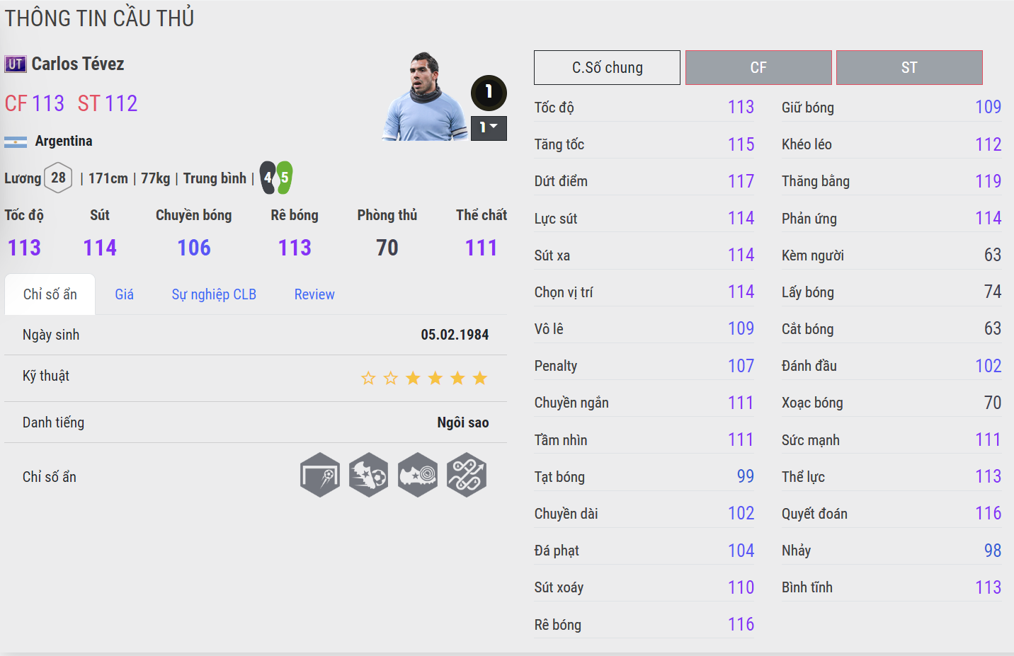 Carlos Tevez được xem là một trong những tiền đạo rất đáng quan tâm cho team color Argentina, Man Utd hay Man City. Anh được xem là mẫu tiền đạo sở hữu tốc độ và khả năng ghi bàn nhạy bén cùng khả năng tấn công đa dạng.
