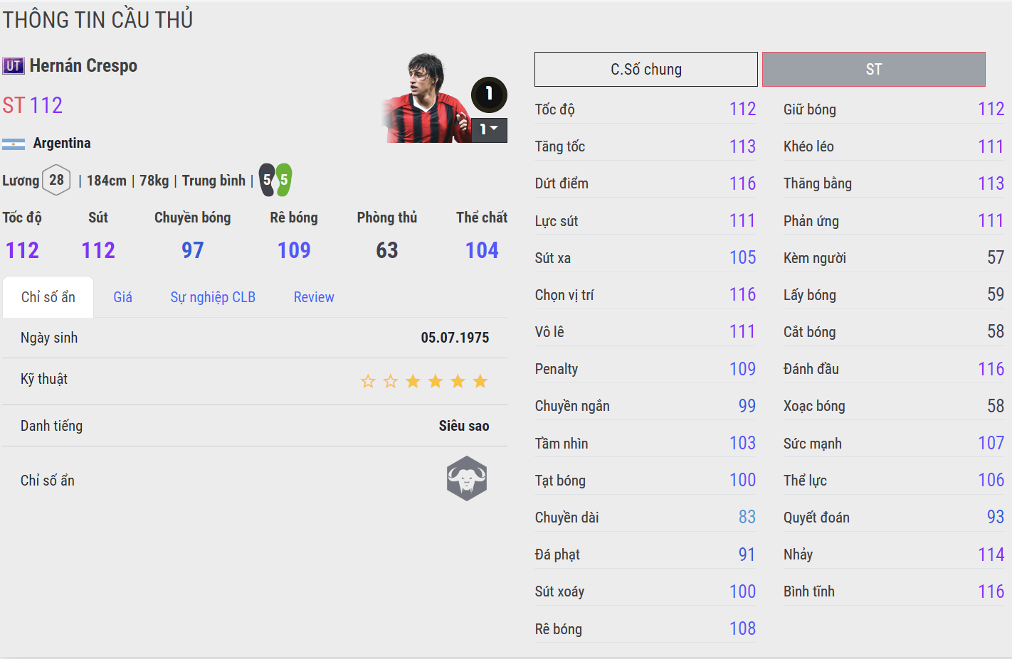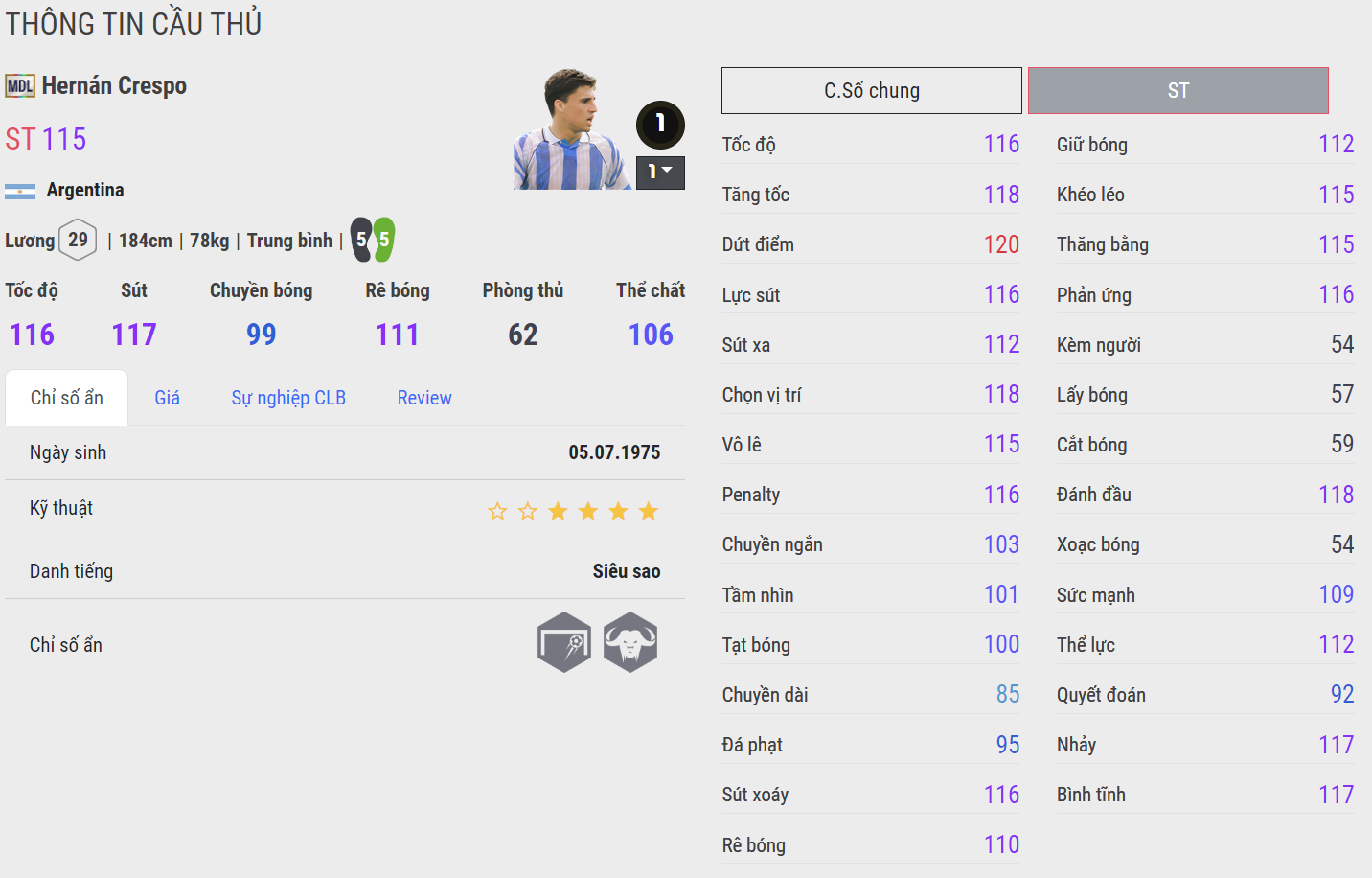 Hernan Crespo luôn được coi là một trong những tiền đạo đáng quan tâm của FC Online. Đầy là mẫu tiền đạo mà nhiều HLV luôn mong ngóng một sự trở lại với vị thế tiền đạo quốc dân từng có trong quá khứ.