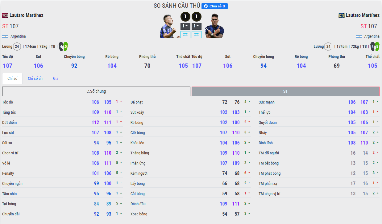 Tiền đạo người Argentina là một cái tên được khá nhiều fan hâm mộ của Inter Milan tin dùng trong những meta gần đấy bất chấp cân nặng của anh này đã giảm từ 81kg về con 72kg, thể hình cũng chuyển về trung bình. Mùa giải 22TS của Lautaro Martinez được đánh giá là có khả năng săn bàn rất tốt. Nhưng khi có sự xuất hiện của WC22 thì có vẻ người chơi đang tỏ ra khá lăn tăn giữa một bên đã limit và một bên thiếu đi chỉ số ẩn đánh đầu mạnh.