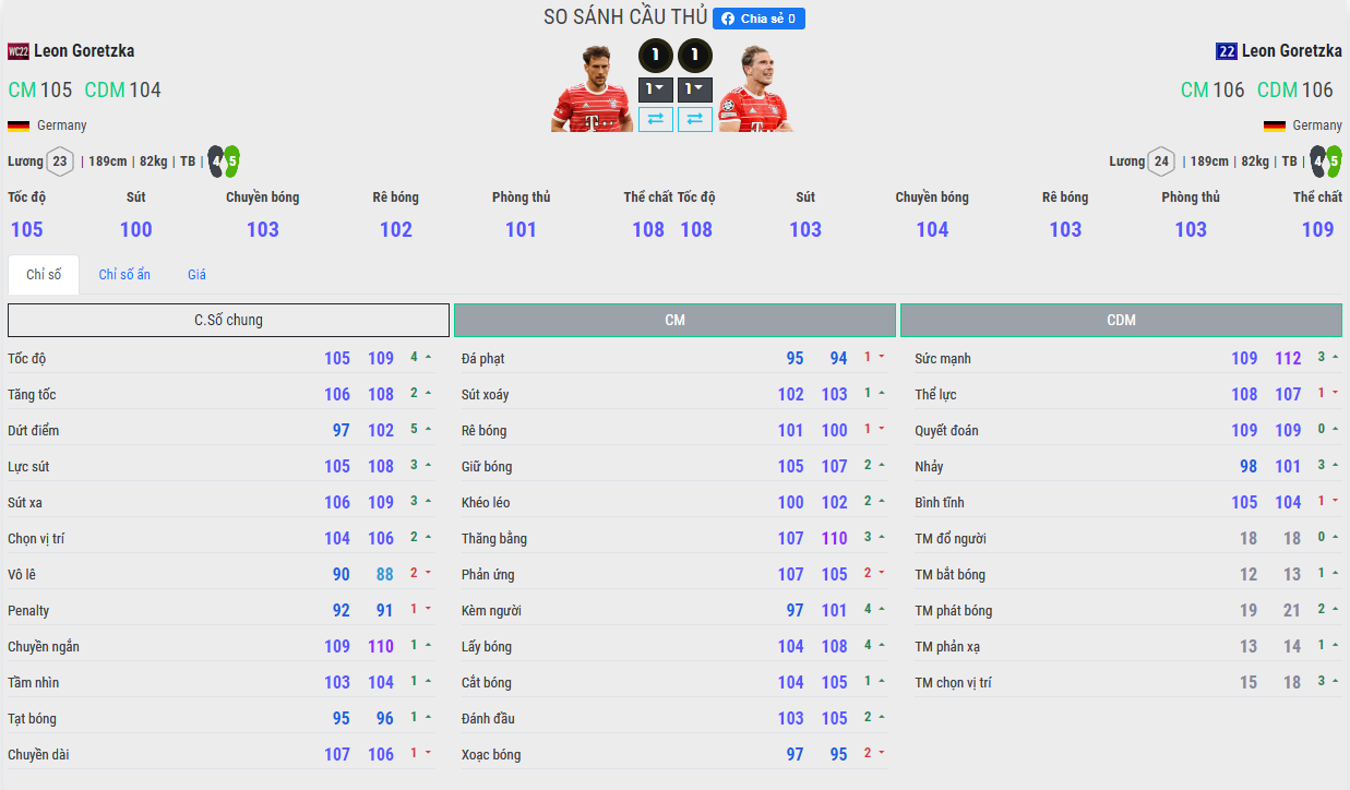 Leon Goretzka là tiền vệ trung tâm, phòng ngự từng được liệt vào hàng quốc dân trong game, tuy nhiên trong năm 2022 thì phong độ của cầu thủ này có phần chững lại, việc không có 22TS hay 23TY là minh chứng rõ nét nhất mà người chơi có thể thấy được về màn trình diễn của tiền vệ người Đức trong năm qua.