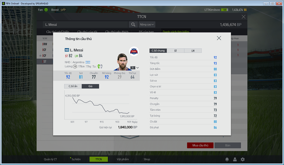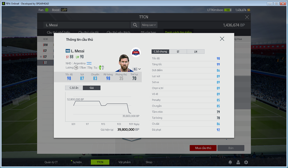 Messi TOTY và Messi NHD, TOTY liệu có hay hơn hoàn toàn? Với mức giá 1tr7 bp ở thẻ +1 và 38tr bp ở thẻ +5 của Messi NHD so với mức giá lên tới 40tr bp thì có lẽ chúng ta có thể cân nhắc lựa chọn Messi NHD +5 để so kè cùng Messi TOTY Trước tiên, nếu bạn nhìn vào vóc dáng của cả 2 với chiều cao 1m70 và 72kg, nhưng vóc dáng của cả 2 lại khác nhau khi Messi TOTY có thể hình nhỏ còn Messi NHD lại có thể hình sức mạnh. Vị trí của Messi TOTY +1 là RW và OVR 91 ở cả RW,CF,CAM,RM và mức chỉ số 89 ở vị trí ST. Còn Messi NHD +5 có OVR 88 tuy nhiên ở vị trí RW,CF chỉ số lên mức 91 với sự vượt trội về chỉ số tốc độ, thăng bằng cũng như giữ bóng và rê bóng. Có thể thấy được Messi NHD có bộ chỉ số tốt cho việc hoạt động bên hành lang cánh hơn còn Messi TOTY thì lại có bộ chỉ số phù hợp với vi trí CF hơn. Bộ chỉ số ẩn của Messi TOTY cũng có một chút nhỉnh hơn so với Messi NHD khi ngoài những chỉ số ẩn Sút xoáy, Ma tốc độ, Bấm bóng(AI) ra thì còn có thêm chỉ số ẩn Sút xa(AI) và Kiến tạo (AI). Với viêc nên sắp xếp Messi TOTY ở vị trí CF và có thêm chỉ số ẩn kiến tạo và sút xa sẽ tối đa hoá công dụng hộ công của anh ta.