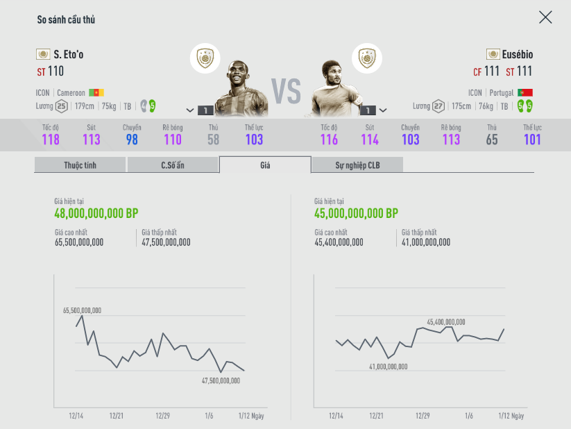 Với mức giá của cả hai đang ngang nhau, câu hỏi luôn được các nhà cầm quân online phân vân khi chọn lựa tiền đạo cắm cho mình ở mùa icon là Eto hay Eusebio ?