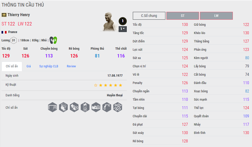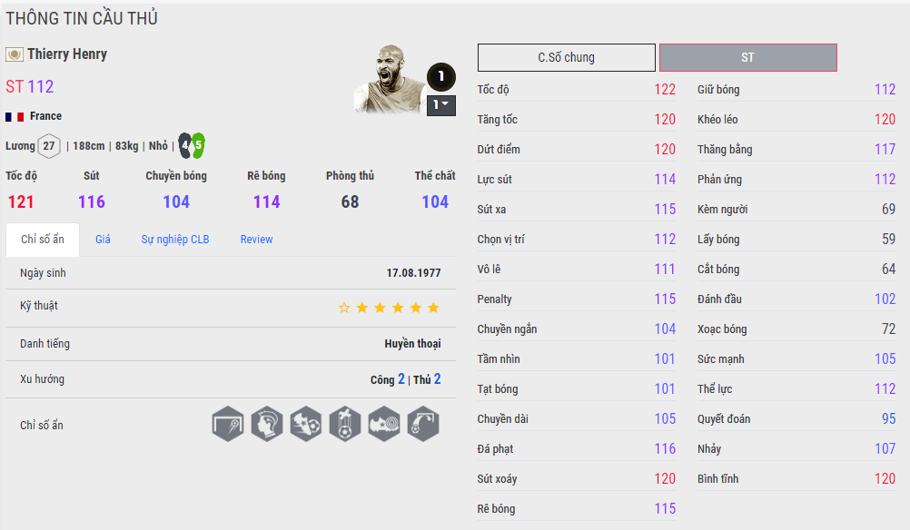 Việc lên hai chân 5/5 đã giúp cho Henry chuyền bóng chính xác hơn nhiều so với phiên bản ICON thường, nó cho phép cầu thủ người Pháp có thể chuyền tốt trong mọi tình huống. Tuy nhiên cũng xin nhấn mạnh là chỉ chuyền bóng thông thường thôi nhé. Còn các đường chuyền kiến tạo thành bàn thì tỷ lệ cũng không khác nhau là mấy. Nói chung về cơ bản là việc nâng cấp ICON TM chỉ cho phép Henry ít chuyền sai địa chỉ đi, nhưng nó không đảm bảo là đường chuyền đó mang tính đột phá cao.