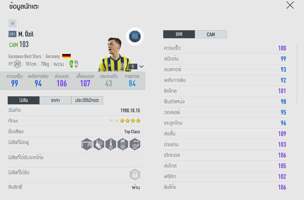 Một điều khá đặc biệt đó là mùa EBS tại sever Thái Lan xuất hiện thêm hai cầu thủ so với nguyên bản bên phía sever Tencent đó chính là Ozil và Puyol.