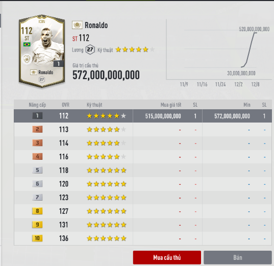Sau khi Ronaldo ICON ra mắt đã tạo lên một cơn sốt thực sự trong TTCN của game khi rất nhiều người săn lùng con hàng được coi là " out trình" này. Điều này vô tình làm cho giá của Ronaldo tăng một cách phi mã. Tuy nhiên hãy cùng fo4vn lượn một vòng qua 2 sever Thái Lan và Hàn Quốc, xem giá của Rô béo hiện tại bao nhiêu.