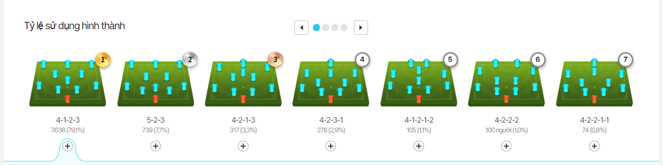Theo thống kê của Nexon thì 4123 đang là sơ đồ được 79% các HLV lựa chọn để thi đấu trong GLXH, trong khi 523 chỉ còn có 7%. Nguyên do rất đơn giản vì 4123 là sơ đồ mang thiên hướng tấn công và đồng đều nhất ở 3 tuyến