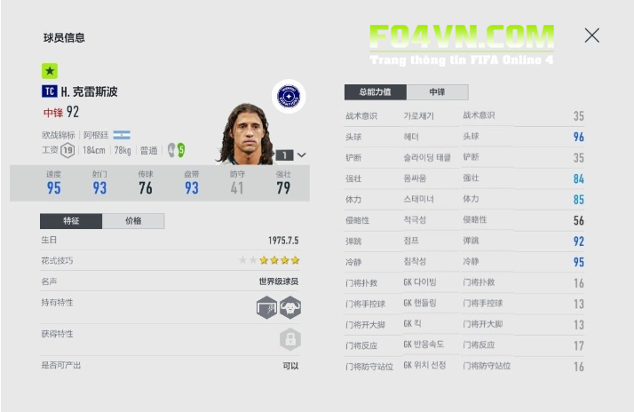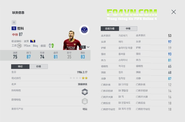 Con hàng không chiến không thể bỏ qua dù là bất cứ mùa nào. Khả năng bật nhảy 92 và đánh đầu 96 có lẽ sẽ biến anh thàng một trong những tiền đạo cắm không chiến tốt nhất.