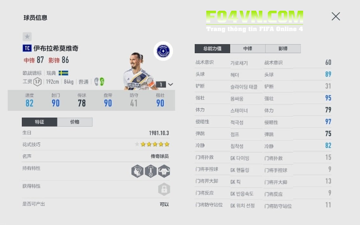 Ibra là cái tên được rất nhiều người chơi quan tâm, không chỉ ở chiều cao tốt mà còn là khả năng đánh đầu 89 cùng chỉ số ẩn đánh đầu mạnh.Anh hứa hẹn sẽ đem đến nhiều bất ngờ.