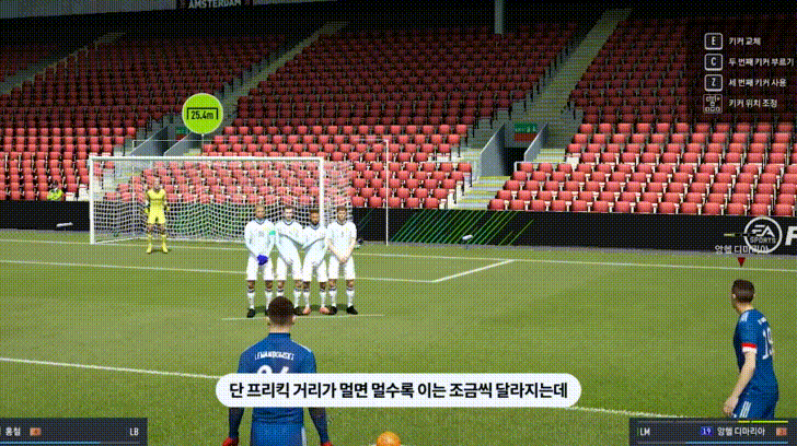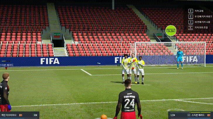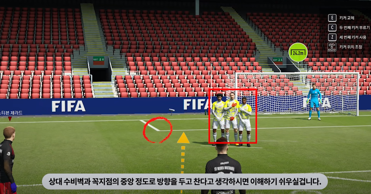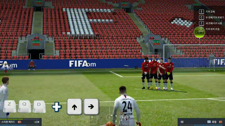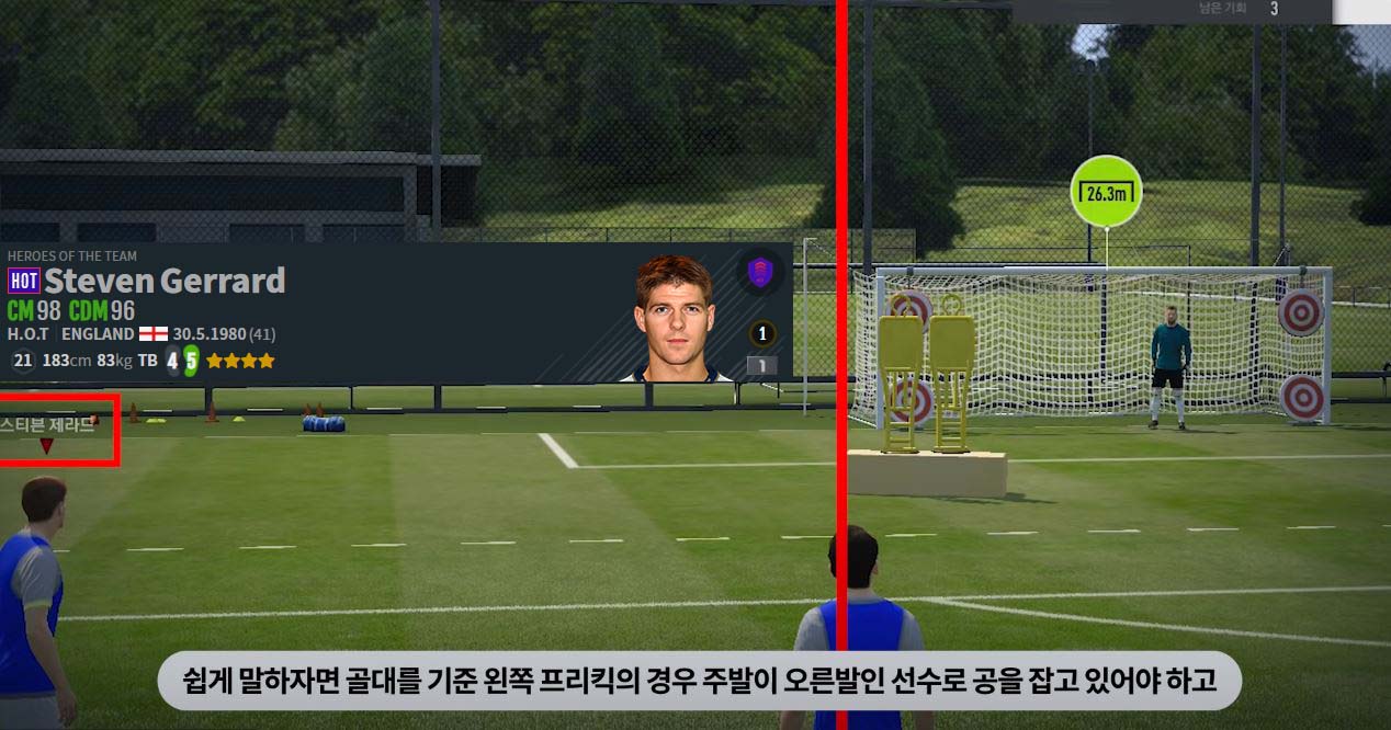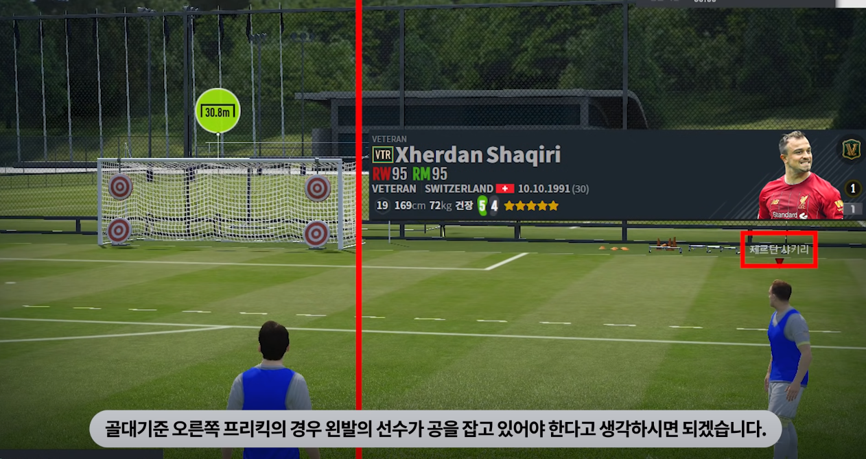 Nếu là cú sút phạt bên trái khung thành thì bạn cần giữ bóng với một cầu thủ thuận chân phải, còn điểm đá phạt bên phải thì cần một cầu thủ giữ bóng bằng chân trái