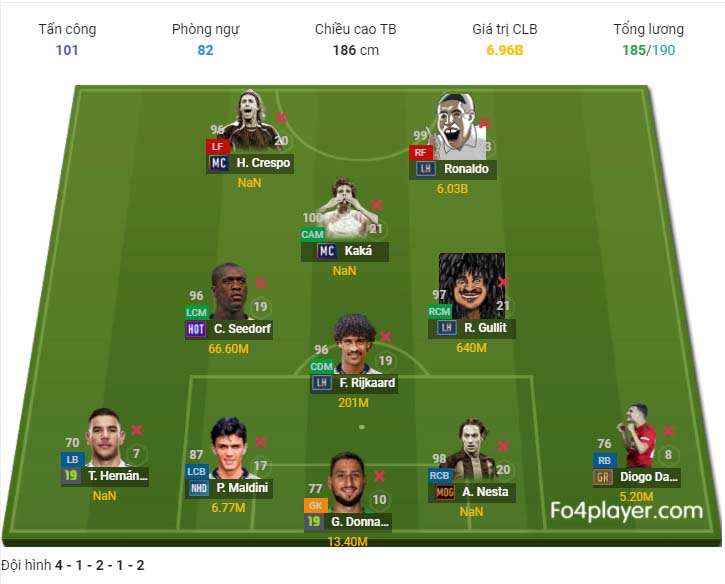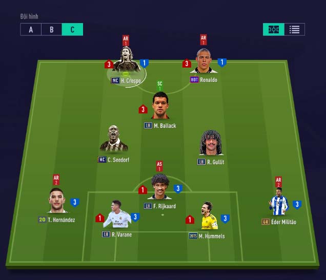 Bên cạnh các team như Pháp, Real thì AC Milan cũng là một team cực mạnh khi luôn có cho mình hàng tiền vệ hủy diệt Gullit, Vieira, Seedorf, Rijkaard. Với việc bổ sung thêm mùa giải MC. Chúng ta sẽ cùng đi xây dựng team color Ac Milan với sơ đồ 4-1-2-1-2 theo meta mới của game xem sao.