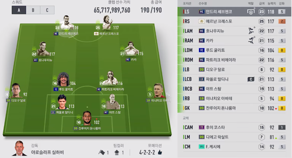 Có lẽ nhìn vào đội hình này sẽ thấy nhiều cái tên từng làm mưa làm gió ở Ac Milan tuy nhiên lại khá thất sủng ở meta game Fo4 là Ronaldinho và Sheva. Tuy nhiên dưới bàn tay của HLV này, có vẻ điều đó không đúng lắm thì phải. Việc sử dụng tới 3 cái tên mùa giải Live để bù cho việc dùng Crespo ICON gánh hàng công, đồng thời làm tường cho Sheva đã phát huy tối đa sức mạnh của những cầu thủ trong đội hình.